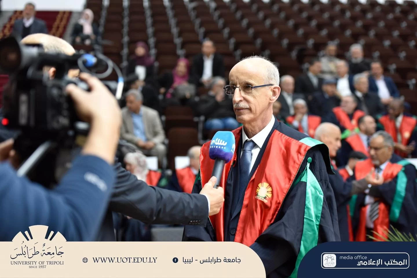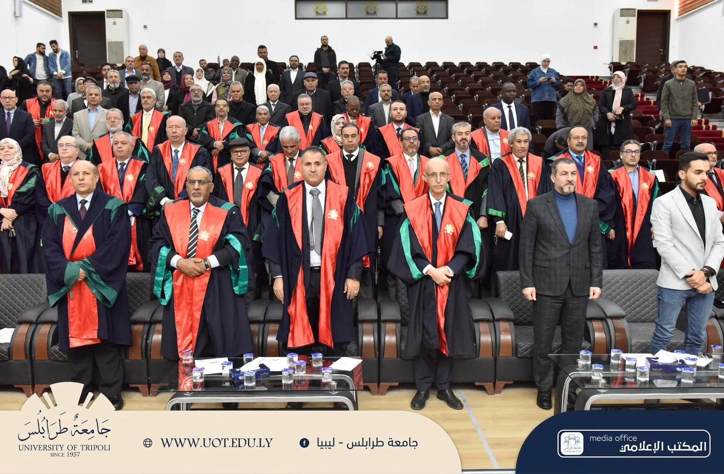 وشهد الاحتفال الذي أقيم اليوم الموافق 29/ فبراير/ 2024. بمدرج رشيد كعبار عديد الكلمات حول تاريخ جامعة طرابلس وخطتها الاستراتيجية التي رسمتها لتأخُد مكانتها الصحيحة بين الجامعات الإقليمية والعالمية، وخلال ذلك تم تقديم العديد من العروض الوثائقية عن الجامعة ذات العلاقة بالتصنيفات الدولية، والاعتماد المؤسسي والبرامجي للكليات، وكذلك الفاعليات المتعلقة بهذا التتويج، بحضور السيد الأُستاذ الدكتور- رئيس الجامعة، ومجلس الجامعة وكافة مكوناتها، وقد حضر هذه الاحتفالية العديد من الضيوف وهم: