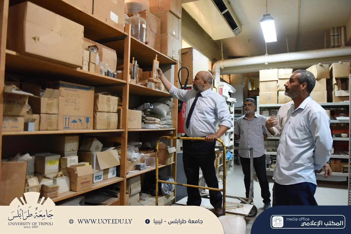 قام السيد أ.د. خالد غومة رئيس جامعة طرابلس المُكلف، اليوم الخميس الموافق 13 يونيو 2024م بجولة ميدانية داخل كليات جامعة طرابلس وما تحتويه أروقتها من معامل ومرافق، برفقة السيد أ. عبد الله الترهوني مدير المكتب الإعلامي بالجامعة، ركز رئيس الجامعة خلال جولته على تفقد معامل الكليات التي تم استلامها ودخلت مرحلة التجهيز والتركيب، حيث كرست رئاسة الجامعة جهودها مؤخرًا في توفير معامل تعليمية مجهزة بأحدث التقنيات للرفع من المخرجات التعليمية، وضمان التدريب العملي للطلبة، وتوفير بيئة تعليمية ملائمة تليق بأبناء هذا الصرح العلمي.