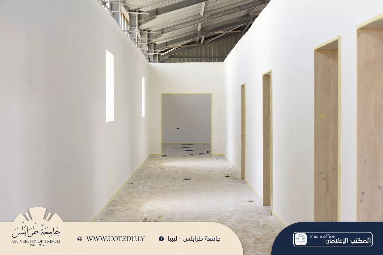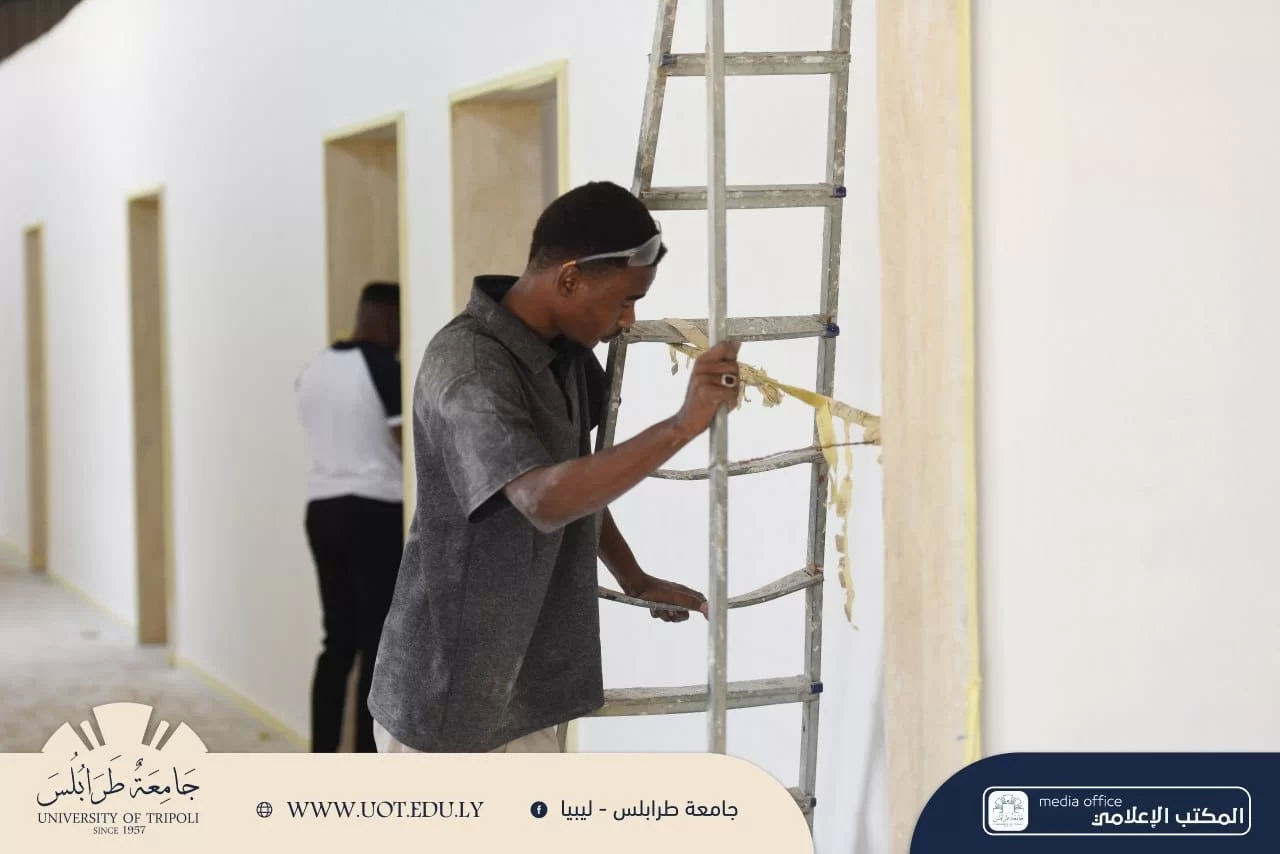 في إطار سعي جامعة طرابلس نحو تطوير مرافق كلياتها من أجل عملية تعليمية سلسة لمنتسبيها، ها هي تشرع في عملية صيانة كلية تقنية المعلومات واستحداث قاعات دراسية جديدة خاصة بالطلبة.