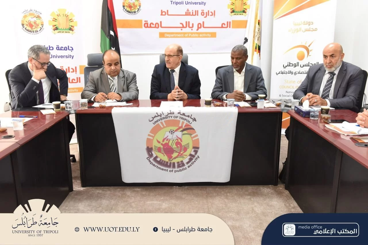 أُقيمت صباح اليوم الخميس الموافق 27 يونيو 2024م بقاعة إدارة النشاط العام - جامعة طرابلس فاعليات الجلسة الحوارية العلمية حول العلوم الاجتماعية ودورها في تعزيز قيم المواطنة، وذلك بحضور: السيد أ. د. محمود الفطيسي، مدير عام المجلس الوطني للتخطيط الاقتصادي والاجتماعي برئاسة الوزراء، والسيد أ. د. علي قنون، مدير مركز البحوث والاستشارات بالجامعة، والسيد أ. د. جمال الجازوي، عميد كلية الآداب واللغات، رفقة السيد أ. د. سالم مجاهد المستشار بالمركز الليبي للدراسات الاستراتيجية والأمن الوطني، والسيد أ. د. منصور عمارة، رئيس اللجنة العلمية بمركز الدراسات الاجتماعية لوزارة الشؤون الاجتماعية، بالإضافة إلى العديد من الأساتدة والبُحاث والمختصين بالجانب الاجتماعي والمجتمعي. تم في هذه الحوارية العلمية تقديم ورقة بحثية مشتركة لكل من: أ. د. حواء عبد السلام الفقهي، وأ. د. خيرية عبد الله الجعط والتي تناولتا فيها أهمية العلوم الاجتماعية في تشكيل فهمنا لقيم المواطنة وكيفية تأثيرها على مجتمعنا وتعزيز الشعور بالانتماء والترابط وفهم أعمق للمسؤوليات والواجبات المدنية. ختاماً، توصل الحاضرون بعد حلقة النقاش المثمر إلى ضرورة التفكير النقدي وإيجاد المهارات لحل المشكلات الضرورية والصعوبات التي تواجه أفراد المجتمع ووضع السياسات والبرامج التي تحافظ على قيم المجتمع. كما يجدر بالذكر أن هذه الحوارية هي ضمن سلسلة البرامج الثقافية والخطة التشغيلية لإدارة النشاط العام بالجامعة.