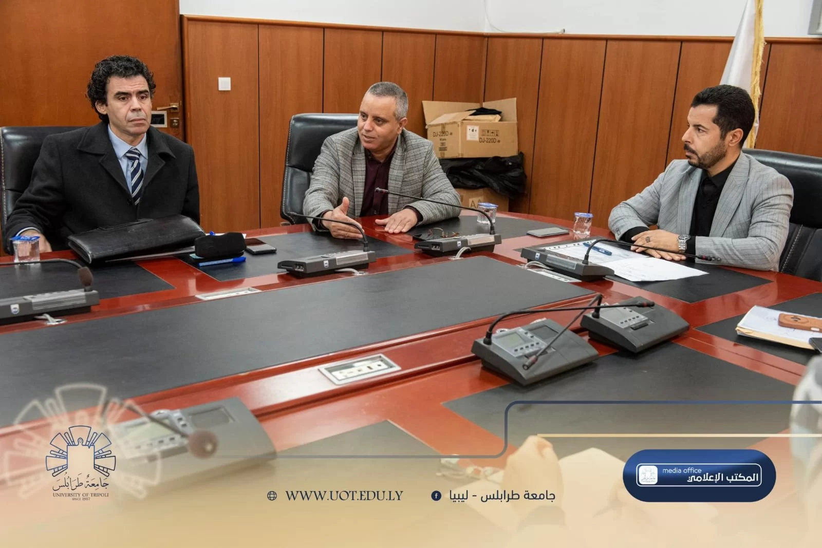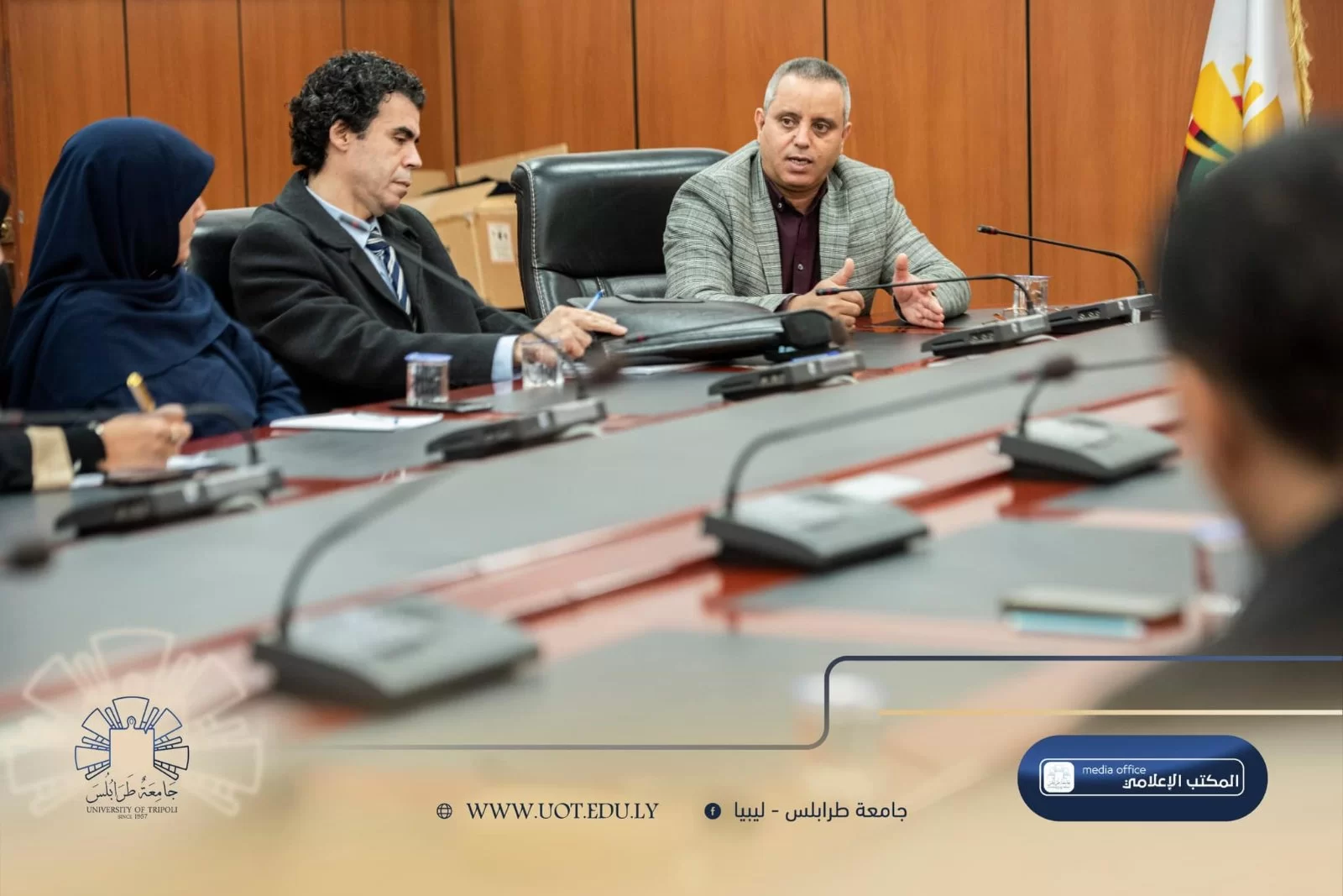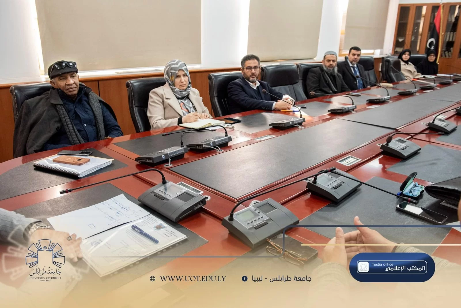 شهدت قاعة الاجتماعات بمبنى رئاسة جامعة طرابلس صباح اليوم الأحد، الموافق 26 يناير 2025 م، اجتماع لجنة الدراسات العُليا بالجامعة. وقد حضر الاجتماع السيد مدير إدارة الدراسات العُليا وعدد من رؤساء أقسام الدراسات العُليا من مختلف كليات الجامعة.تناول الاجتماع بنود عدة، أبرزها تسجيل طلبة الدراسات العُليا لمرحلتي الماجستير والدكتوراه في المنظومة الإلكترونية للجامعة. كما تم مُناقشة سُبل تحقيق الأهداف المرجوة والتي يعد أهمها توطين الدراسات العُليا بالداخل.