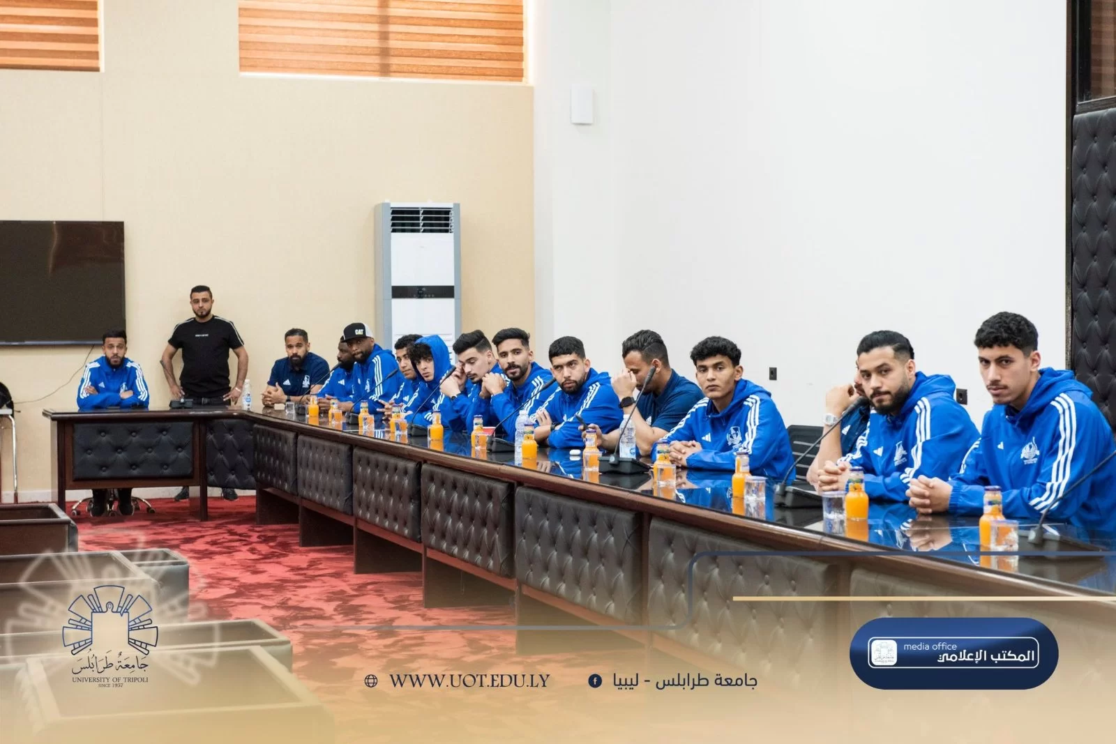 اجتمع صباح الأمس الأربعاء، الموافق 16 أبريل 2025 م، مجلس إدارة نادي جامعة طرابلس الرياضي الثقافي الاجتماعي بالطاقم الفني والإداري ولاعبي الفريق الأول لكرة القدم بالنادي، وذلك لمناقشة استعدادات الفريق للموسم الرياضي 2024/2025.يجدر بالذكر أن الفريق سيخوض اليوم الخميس، الموافق 17 أبريل، أولى مبارياته في دوري الدرجة الثانية على أرضية ملعب شهداء عين زارة، وذلك على تمام الساعة 04:00 مساءً.مع تمنياتنا لهم بالتوفيق والسداد.