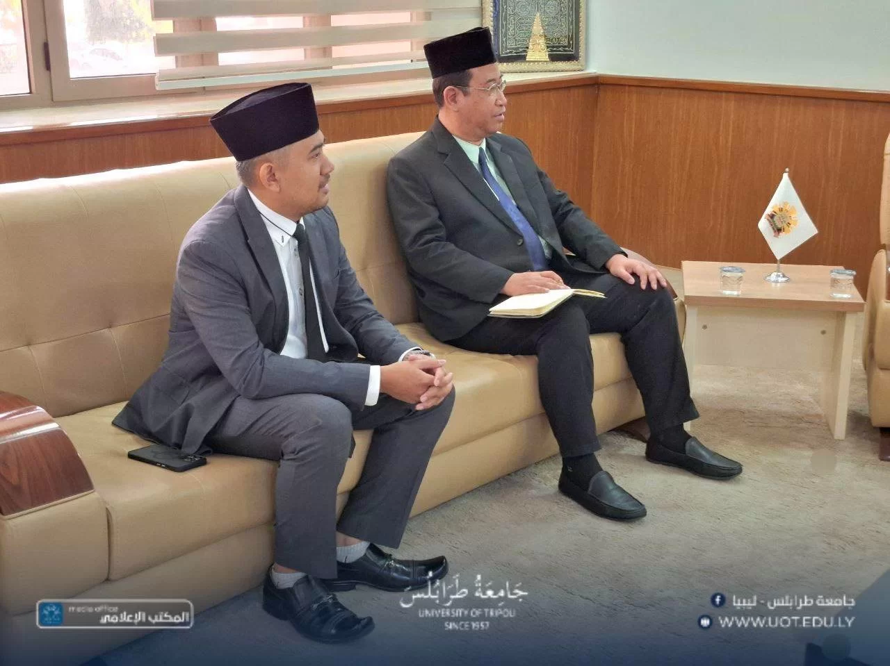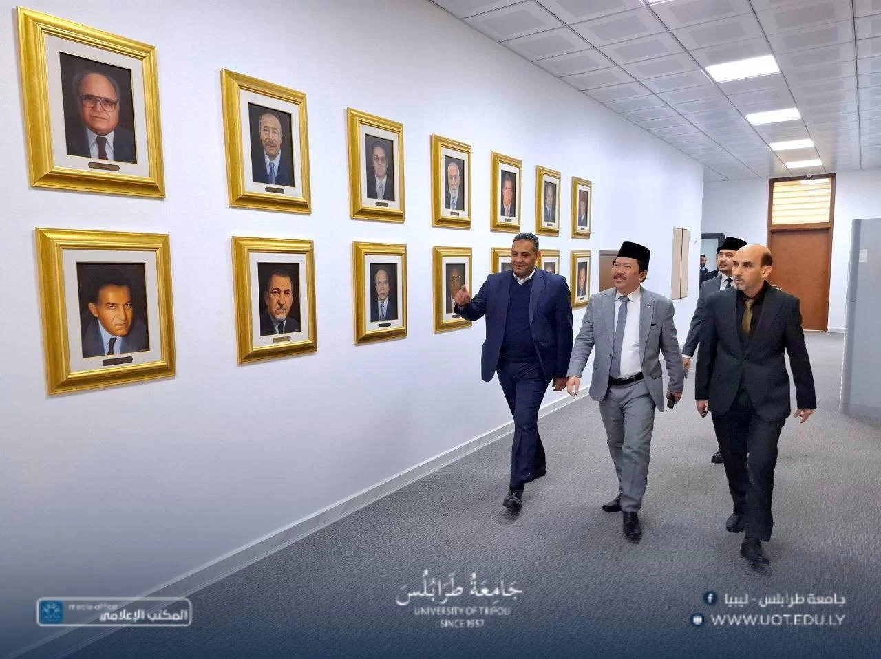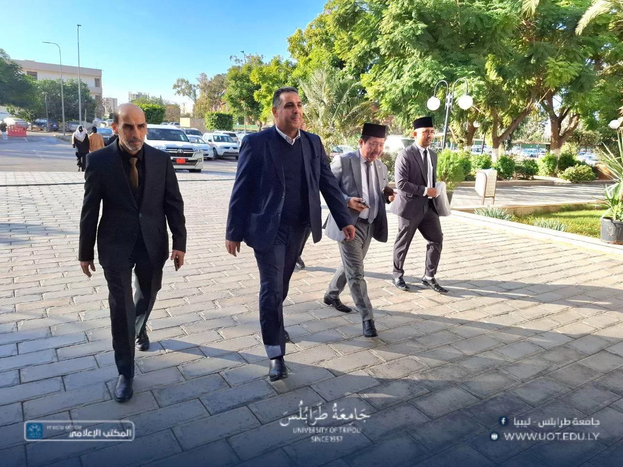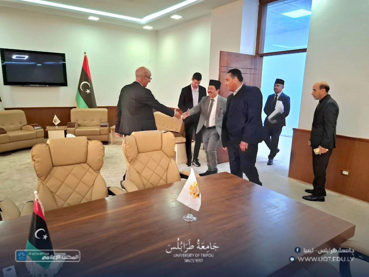 استقبل السيد أ.د. خالد عون، رئيس جامعة طرابلس، صباح أمس الخميس، الموافق 4 ديسمبر 2025 م، السيد د. ديدي أحمد رفاعي، القائم بأعمال سفارة جمهورية إندونيسيا لدى ليبيا، بحضور السيد د. علي مصدق، وكيل الجامعة للشؤون الطلابية، وذلك بصدد بحث علاقات التعاون الأكاديمي والعلمي بين الطرفين.خلال اللقاء، نوقشت سبل دعم برامج تبادل الخبرات العلمية والثقافية، وإمكانية إبرام مذكرات تفاهم في المجال العلمي، وتطوير المناهج، وتبادل الخبرات بين أعضاء هيئة التدريس، علاوةً على التعاون في مختلف مجالات العلوم.أكد السيد عون حرص جامعة طرابلس المستمر على الانفتاح والانخراط مع الجامعات الإقليمية والدولية، وبناء شراكات تسهم في رفع جودة التعليم والبحث العلمي.ختامًا، أشار ممثل الجامعات الإندونيسية إلى أن تلك الجامعات تُعد من المؤسسات الأكاديمية المرموقة، التي تمتاز بتنوع واسع في تخصصاتها العلمية والإنسانية، وتحتوي على مراكز بحثية متقدمة في الطاقة المتجددة والصناعات الإبداعية، مما يؤهلها لفتح آفاق تعاون واسعة.