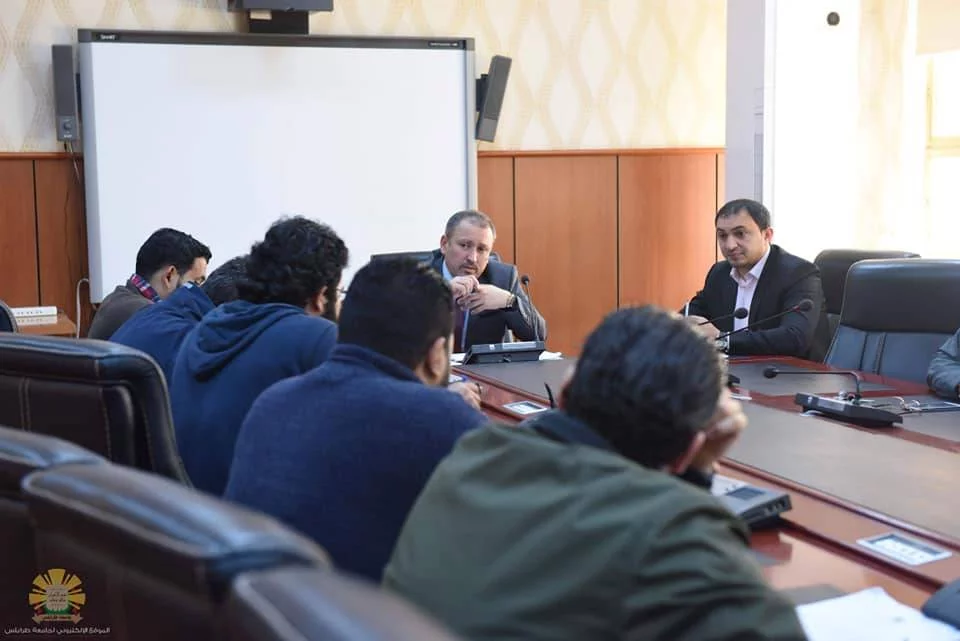 إجتمع رئيس جامعة طرابلس الاستاذ الدكتور "نبيل النطاح" صباح اليوم الخميس الموافق للثامن والعشرون من مارس2019 بقاعة الإجتماعات الرئيسية للجامعة برئيس إتحاد طلبة جامعة طرابلس ورئيس إتحاد طلبة كلية الصيدلة وأعضاء الهيئة التنفيذية، وبحضور مدير مكتب الرئيس "أ.عصام البوني" وعميد كلية الصيدلة "أ.د عبد الرؤوف القصبي ووكيل كلية الصيدلة ورئيس قسم الدراسة و الإمتحانات، وذلك لمناقشة مطالب الطلبة والوقوف على المشاكل التي تواجههم والتي تم إغلاق الكلية من أجلها، وقد إستمع رئيس الجامعة للمشاكل وأكد على ضرورة العمل لحلها بما يضمن تحقيق أفضل النتائج الدراسية للطلاب.