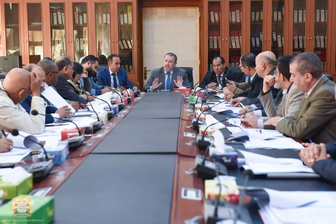 اجتمع صباح اليوم الاثنين الموافق الأول من ابريل 2019 بقاعة الاجتماعات الرئيسية أعضاء مجلس الجامعة، وذلك برئاسة الأستاذ الدكتور "نبيل النطاح" رئيس جامعة طرابلس، وبحضور السادة الوكلاء وعمداء الكليات والكاتب العام ونقيب أعضاء هيئة التدريس ونقيب موظفي الجامعة والمسجل العام ورئيس مكتب الجودة، ورئيس الاتحاد العام لطلبة جامعة طرابلس. حيث تم اعتماد محضر الاجتماع الثالث للعام الحالي، بعدها تم مناقشة بنود الاجتماع والمتمثلة في مذكرة السيد عميد كلية التربية جنزور والمتضمنة مقترح إقامة ورشة عمل حول تفعيل أدوات التقويم المبني على أداء مدارس التعليم الأساسي خدمة للمجتمع، كما تم عرض مقترح عميد كلية الاقتصاد بخصوص تأسيس القسم المالي والصيرفة الإسلامية، ومناقشة اعتماد اليوم الوطني لأخلاقيات البحث العلمي، وعرض المقترح المقدم من مدير مركز اللغات بشأن اللائحة التنظيمية للمركز.