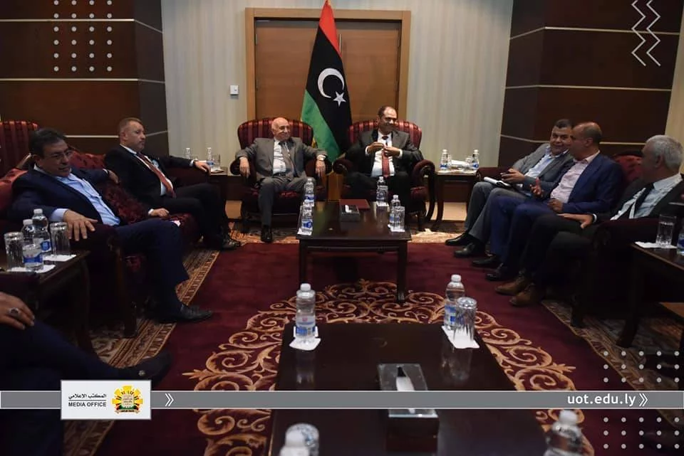 حضر رئيس جامعة طرابلس "أ.دنبيل النطاح " ظُهر أمس الثلاثاء الموافق العشرون من أغسطس، فعاليات حوار خاص "حول المشروع الوطني لامتحانات الشهادة الثانوية"، وذلك بقاعة الاجتماعات بفندق المهارى، حيث شهدت فعاليات هذا الحوار حضور مميز ضمّ السيد رئيس مجلس النواب "أ. الصادق الكحيلي "ووزير الخارجية "أ.محمد سيالة"و "م.خالد الأسطى "نائب مجلس النواب، "أ.د.عثمان عبد الجليل" وزير التعليم، و"العميد/خالد مازن" وكيل وزارة الداخلية، "أ. مصعب العابد" عضو مجلس النواب، "أ.د.محمد العتوق" رئيس اللجنة الإشراف والمتابعة العليا للإمتحانات، و"د.سعيد معيوف "مدير إدارة الدراسات العليا-عضو اللجنة العليا، و"د.مسعودة الأسود" عضو اللجنة التنفيذية العليا للامتحانات الشهادة الثانوية.حيث تناول الحوار عرض جُملة من التحديات التي تواجه قطاع التعليم في ليبيا بشكل عام والامتحانات الشهادة الثانوية على وجه الخصوص، كما دعت الوزارة إلى إنشاء" مشروع الوطني لإصلاح المنظومة التعليمية"، والذي يهدف إلى تزويد المعلمين بالمهارات الاجتماعية الأساسية والتعليمية، وتجسيد ثقافة الدائرة الثقافية بأن يصبح لدينا منسق بدلاً من مدرس، وحواراً بدلاً من حصة، ومتعلمين مشاركين بدلاً من تلاميذ، وخلق بيئة مشجعة ومريحة لأبنائنا الطلاب لأداء امتحاناتهم بعيداً عن القلق والتوتر والانتقال بهم إلى أجواء التعليم الجامعي، وكذلك العمل على توفير وتقديم بيئة هادئة وخالية من صدى الأزمات التي تمر بها بلادنا الحبيبة.كما شهد ختام الفعاليات تكريم مدير مديرية أمن طرابلس سابقاً "العقيد صلاح السموعي "رحمه الله، وكذلك تكريم وزير الحكم المحلي وزير الداخلية سابقاً.