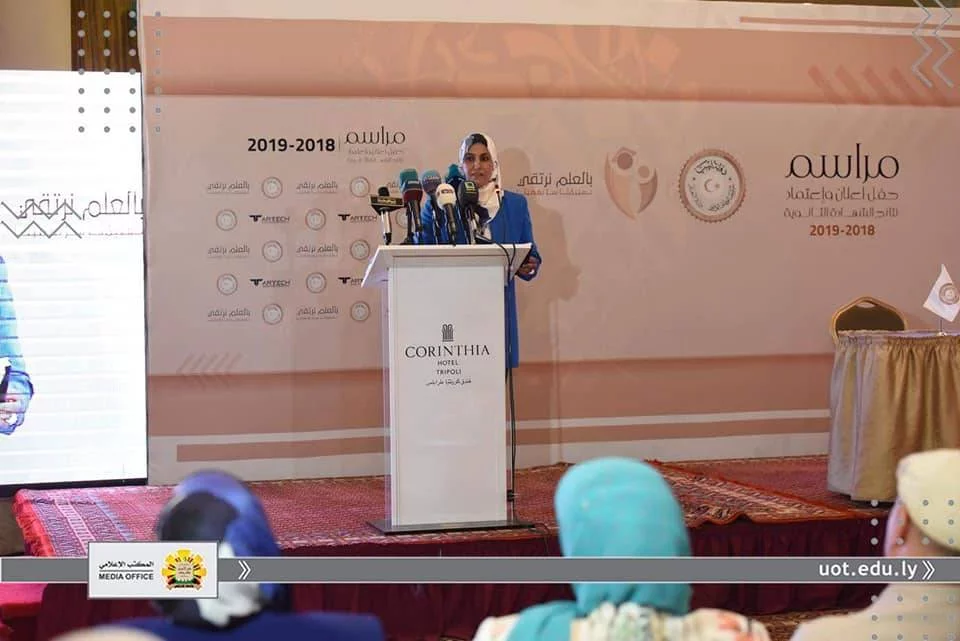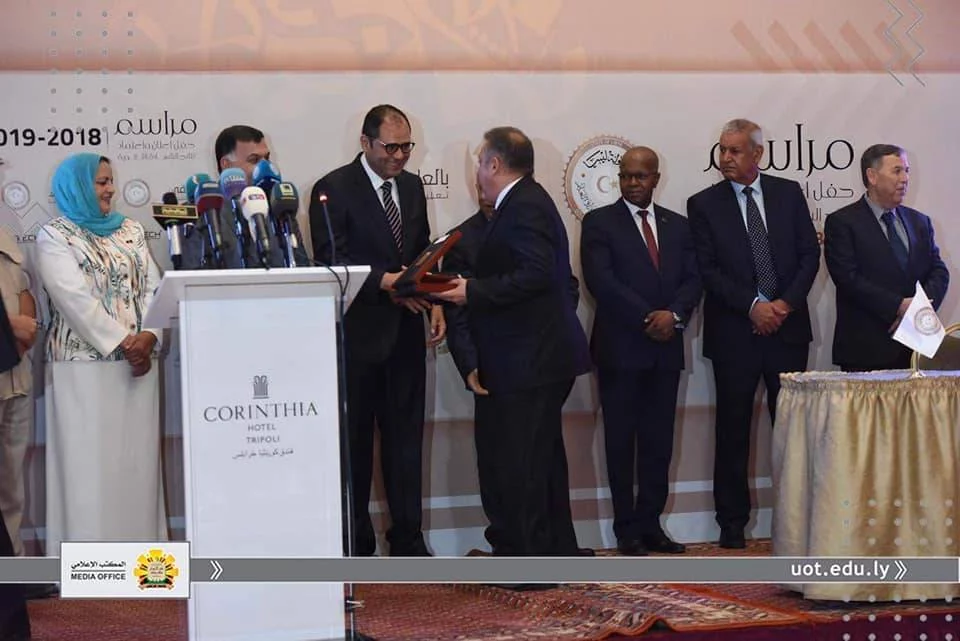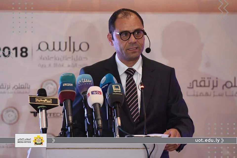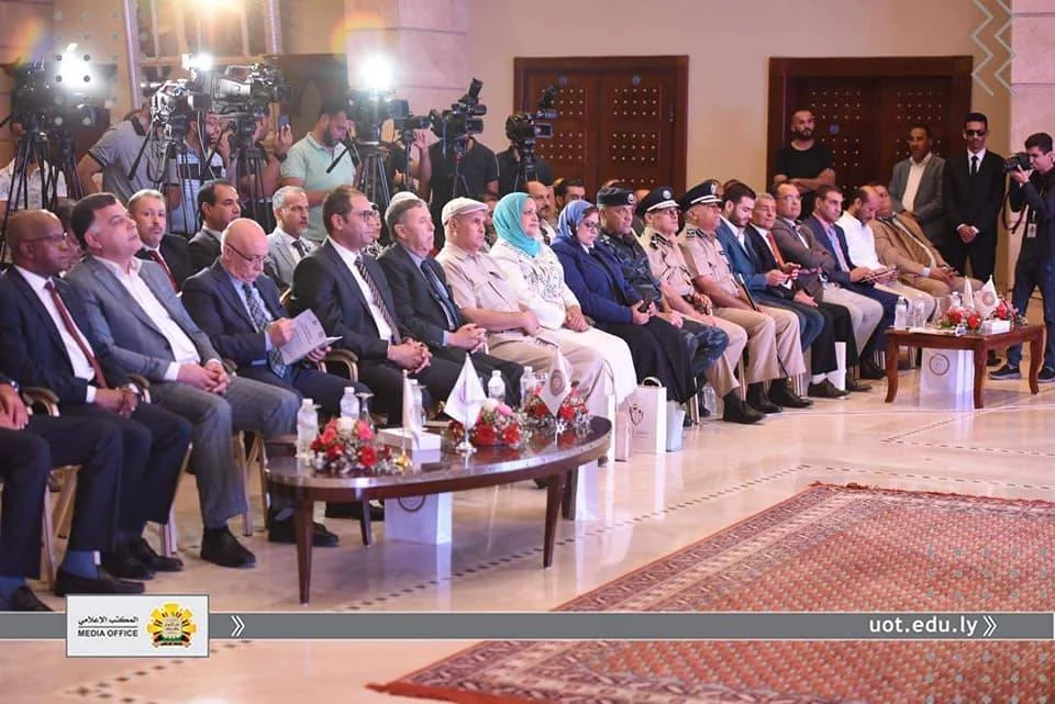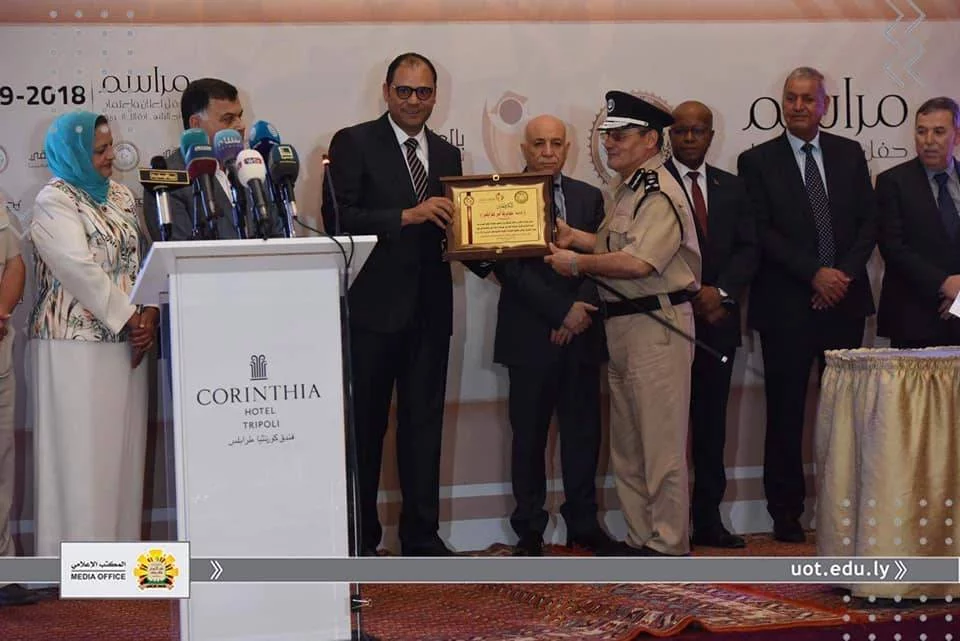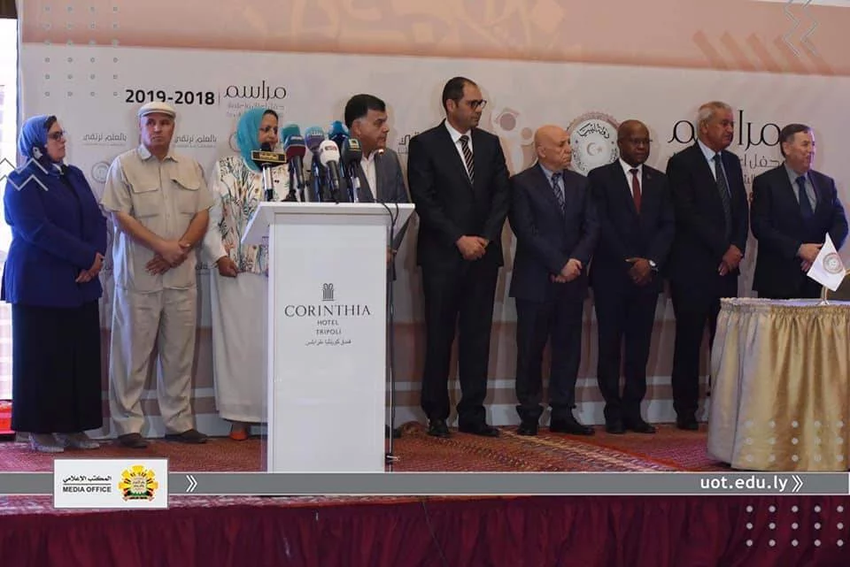 حضر رئيس جامعة طرابلس- رئيس اللجنة المركزية العليا لامتحانات طلبة الشهادة الثانوية العامة "أ. د. نبيل النطاح" رفقة مدير المكتب الإعلامي-المتحدث الرسمي لجامعة طرابلس "أ. هيثم الرتيمي" مساء اليوم الخميس مراسم الحفل الوطني لاعتماد وإعلان نتائج الشهادة الثانوية للعام الدراسي 2018/2019، وذلك بقاعة الاجتماعات بفندق كورنثيا، حيث شهد الحفل حضور بعض الشخصيات السياسية والأمنية والثقافية والإعلامية، من بينها رئيس مجلس النواب "أ. الصادق الكحيلي"، ووزير التعليم "أ. د .عثمان عبد الجليل "، ووزير التخطيط "د .الطاهر الجهيمي"، ووزير الحكم المحلي "د. ميلاد عبدالله الطاهر"، ووكيل وزارة الداخلية "العميد/ خالد مازن"، و "د. هند شوبار" المستشارة بالمجلس الرئاسي للشؤون الخدمية و"أ. محمد القبلاوي" رئيس اتحاد عام طلبة ليبيا.كما حضر الحفل أيضاً "العميد /أسامة عويدان "مدير مديرية أمن طرابلس، و"العميد /رمضان برباش" مساعد مدير مديرية أمن طرابلس، والأمين العام للمنظمة الليبية للتربية و للثقافة والعلوم "أ. د .عبد المنعم بولائحة"، وعدد من رؤساء الجامعات وأعضاء اللجنة التنفيذية العليا والمركزية لامتحانات الشهادة الثانوية.كما شهد الحفل إلقاء العديد من الكلمات بهذه المناسبة ،وعرض تقديمي لاستعراض النتائج ، حيث كانت نسبة النجاح الشهادة الثانوية بالقسم العلمي 42.33%، ونسبة النجاح بالقسم الأدبي 20.79%، وبنسبة عامة 38.30%.وفي ختام الحفل تقدّم وزير التعليم بالشكر الجزيل والتقدير الكبير لكل من المؤسسات التعليمية من معلمين ومعلمات وموظفي قطاع عام الوزارة والجهات الأمنية والخدمية التي ساهمت في نجاح العملية الامتحانية على أكمل وجه.