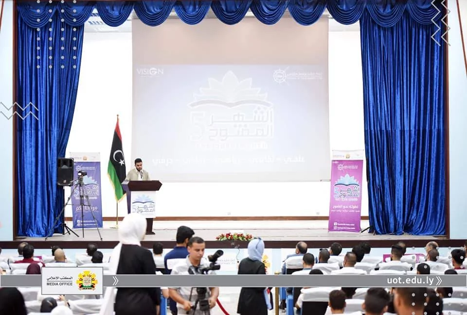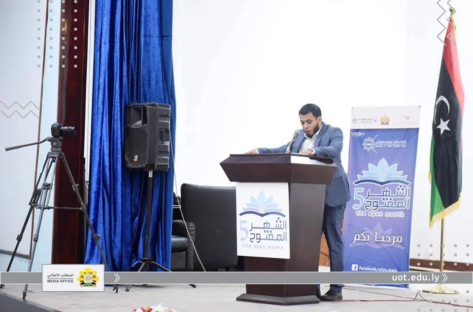 انطلقت صباح اليوم الثلاثاء بمسرح كلية الهندسة فعاليات الشهر المفتوح في نسخته الخامسة، والذي ينظمه اتحاد طلبة جامعة طرابلس، حيث شهد الحفل حضور رئيس جامعة طرابلس "أ. د. نبيل النطاح و "أ. د .عبدالرزاق العوزي" وكيل الكليات الطبية و "أ. محمد القبلاوي" رئيس اتحاد عام طلبة ليبيا، و "أ. محمد عمران أبوزيد" رئيس اتحاد طلبة جامعة طرابلس و "أ. هيثم الرتيمي" مدير المكتب الإعلامي و "د. محمد القريو" مدير مكتب الجودة بالجامعة، وعدد من عمداء الكليات، و ضيوف مندوبين عن شركة ليبيآنا وليبيا القابضة للاتصالات.حيث افتتح الحفل بآيات من الذكر الحكيم، كما ألقى رئيس جامعة طرابلس كلمة بالخصوص أشاد فيها بالمجهودات الكبيرة التي يقوم بها اتحاد طلبة الجامعة في سبيل حث زملائهم الطلبة على التطوير من أنفسهم وتنمية مهاراتهم متمنياً لهم المزيد من التقدم والإبداع، كما ألقى رئيس اتحاد طلبة الجامعة كلمة نعي من خلالها "محمد الحداد "رئيس اتحاد طلبة كلية التمريض السابق.ويعتبر هذا الشهر بمثابة مشروع ثقافي سنوي و ريادي لطلبة يشمل جميع الجوانب الرياضية والعلمية والحرفية، وفي ختام الاحتفال قام رئيس جامعة طرابلس بجولة تفقدية لقاعات المخصصة لدورات التدريبية لهذا الشهر المفتوح.