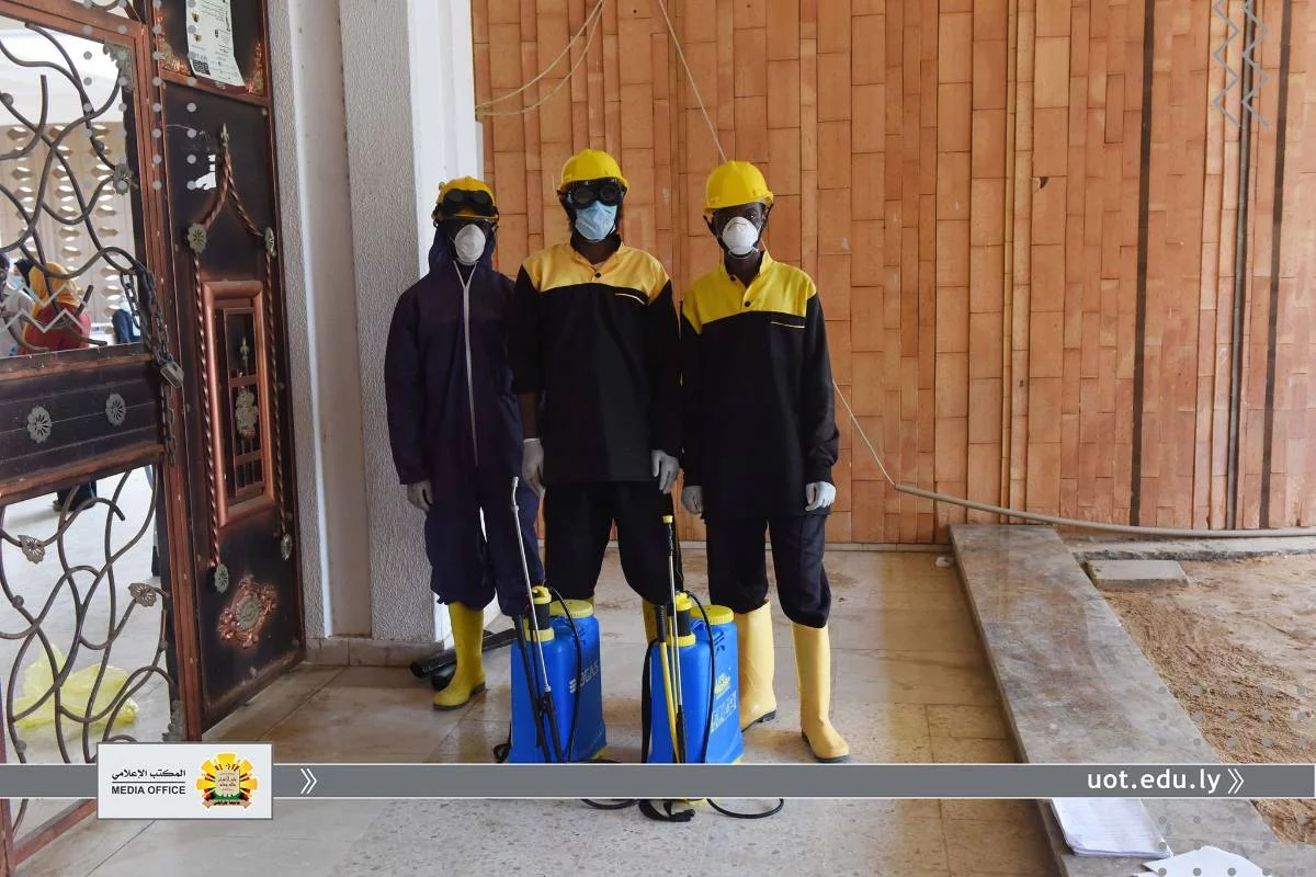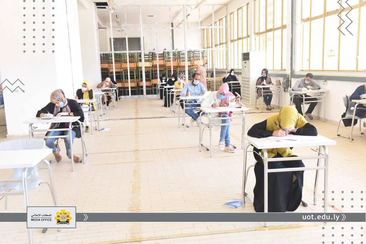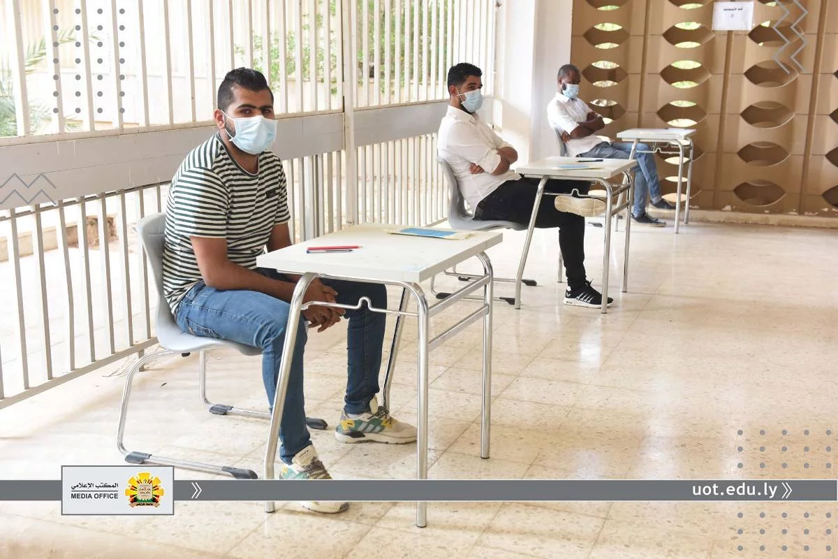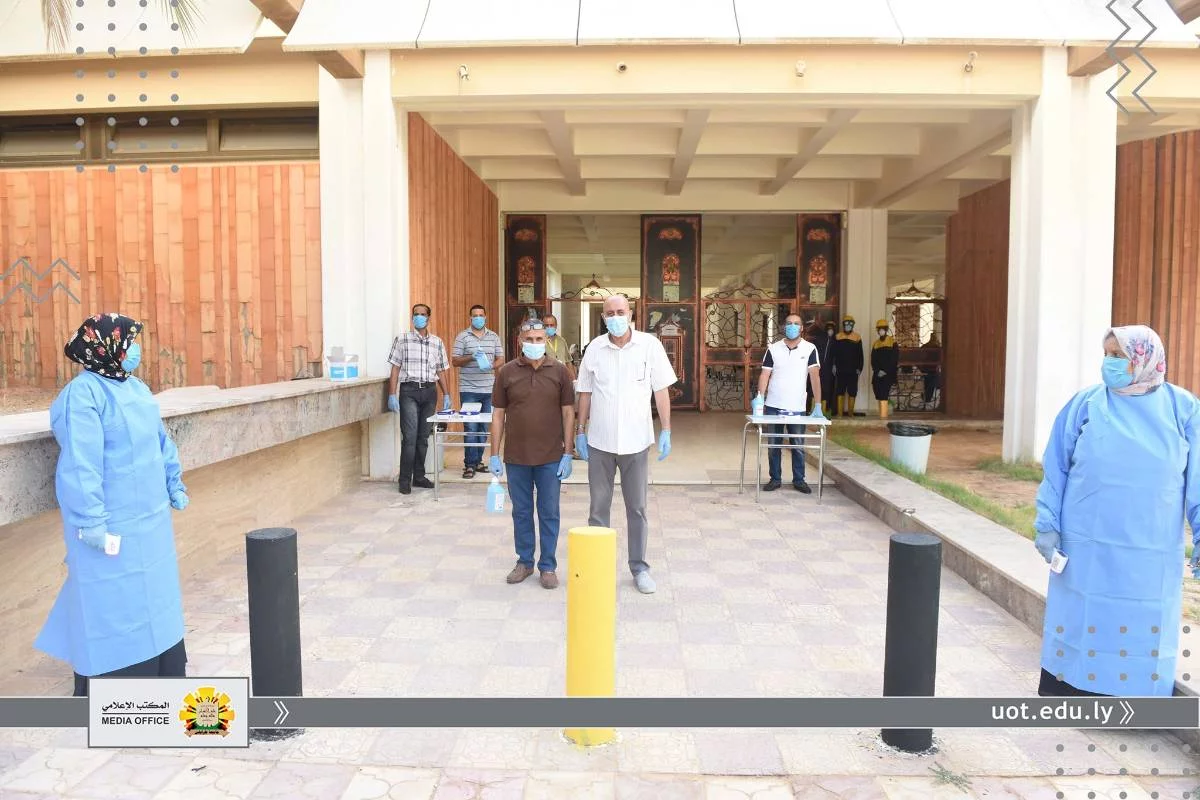 تفقد رئيس جامعة طرابلس "أ. د. نبيل النطاح" صباح اليوم الأحد ، رفقة وكيل الكليات الطبية-رئيس لجنة مكافحة جائحة كورونا المستجد "أ. د. عبد الرزاق العوزي"، قاعات ومدرجات الامتحانات وشملت الزيارة كلية الصيدلة- الزراعة- الطب البيطري- الآداب ، حيث اطلع من خلالها على الإجراءات الاحترازية والوقائية التي تقوم بها الجامعة في اليوم الأول لبدء الامتحانات. وأكّد السيد الرئيس خلال لقاءه بالكوادر العلمية والإدارية بالكليات على الجانب التعليمي والجانب الصحي لآلية التنفيذ التي وضعتها الجامعة لعودة الامتحانات لأبنائنا الطلبة، والتي تمت الموافقة عليها من قبل اللجنة العلمية الاستشارية لمكافحة جائحة كورونا المستجد، وتحقيق شروط السلامة الصحية من حيث التباعد بين الطلاب، وعدم وجود أي مظاهر للازدحام والتجمعات.وفي التصريح للناطق الرسمي باسم اللجنة المركزية العليا لعودة الدراسة "أ. هيثم الرتيمي" أكد أن الكليات اتخذت جميع شروط السلامة الصحية من حيث تعقيم القاعات والمدرجات، وتأمين أجهزة اختبار الحرارة، وتوفير المعقمات اللازمة، متمنياً لأبنائنا الطلبة كل التوفيق والنجاح لمتابعة دراستهم وتعويض الفاقد العلمي.