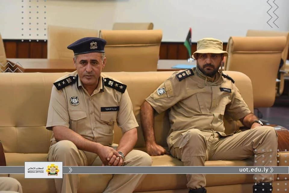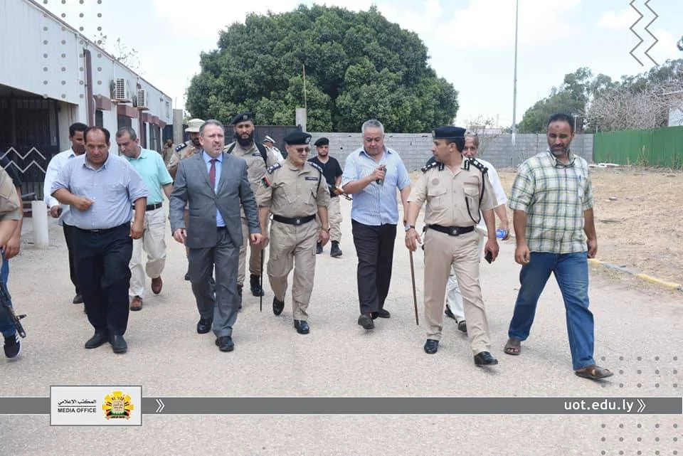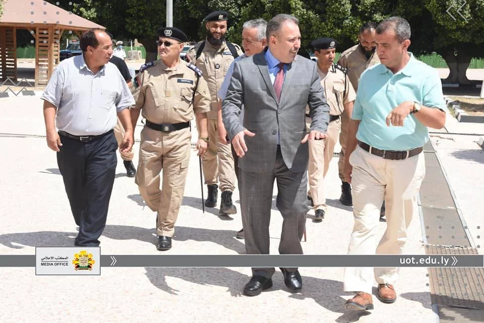 استقبل رئيس جامعة طرابلس "أ. د. نبيل النطاح" صباح اليوم الاثنين بمكتبه، مدير مديرية أمن طرابلس "العميد/أسامة عويدان" والوفد المرافق له ، وذلك بحضور "أ. د. عبد الرزاق العوزي" وكيل الكليات و "أ. محمد زيد " رئيس اتحاد طلبة جامعة طرابلس. جاءت هذه الزيارة لبحث سبل التعاون بين جامعة طرابلس ومديرية أمن طرابلس لخدمة المصلحة العامة ،والاطلاع على سير الامتحانات داخل الجامعة في ظل اتخادها لكافة الإجراءات الاحترازية والوقائية في سبيل الحفاظ علي الطلبة والكادر الوظيفي للجامعة، كما قام العميد "أسامه عويدان" بجولة تفقدية شملت كلية الطب البيطري اطلع من خلالها علي جاهزية المستشفى التعليمي والمرافق التابعة للكلية، وفي الختام تقدّم العميد بجزيل الشكر والتقدير والعرفان لجامعة طرابلس لجهودها المبذولة في استكمال العملية التعليمية للعام الحالي على أكمل وجه.