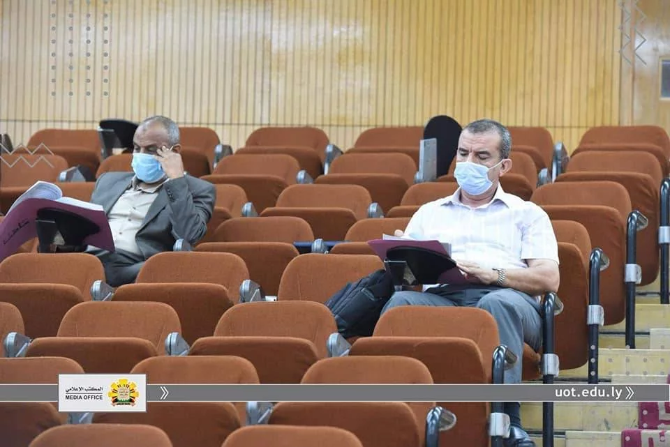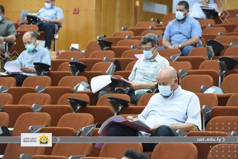 عقد صباح اليوم الإثنين الموافق للسابع من سبتمبر، الاجتماع التاسع لمجلس جامعة طرابلس، وذلك برئاسة "أ. د. نبيل النطاح" رئيس جامعة طرابلس، وبحضور السادة الوكلاء والكاتب العام، وعمداء الكليات ونقيب أعضاء هيئة التدريس ونقيب موظفي الجامعة ،والمسجل العام ورئيس مكتب الجودة، ورئيس اتحاد طلبة جامعة طرابلس. حيث تم اعتماد محضر الاجتماع الثامن لمجلس الجامعة للعام الحالي، و مناقشة بنود الاجتماع والمتمثلة في عرض تقديمي للتعريف بمركز الريادة والابتكار بالجامعة، وعرض التقرير السنوي عن نشاطات كلية التربية البدنية وعلوم الرياضة خلال العام 2019-2020، وكذلك عرض مشروع النظام الأساسي لصندوق التكافل الاجتماعي والمقدم من رئيس مجلس إدارة الصندوق، و بالإضافة لعرض مذكرة عميد كلية الهندسة بشأن تفعيل قسم المرحلة العامة بالكليات.