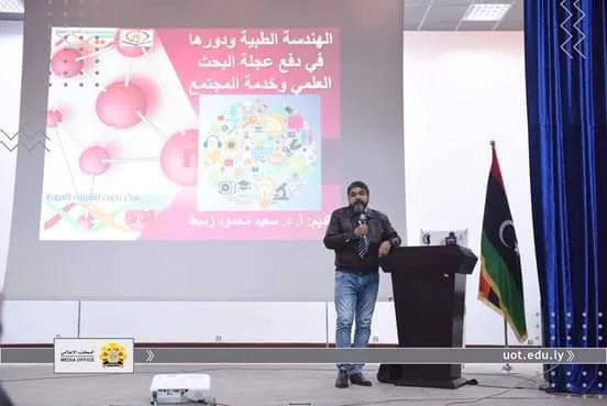 The Faculty of Engineering at the University of Tripoli celebrates the International Day of Medical Engineering, under the slogan “Medical Engineering in Libya: Significance and Reality”. The event took place at the Faculty of Engineering and was attended by the Chairman of the Atomic Energy Corporation, Dr. Wagdy Al-Ratimi, the Secretary-General of the National Committee for Education, Culture and Science, Prof. Dr. Abdel-Moneim Abu Al-Qulaha, the Dean of the Faculty of Engineering, Prof. Dr. Mahmoud Al-Falah, the Dean of the Faculty of Human Medicine, Prof. Faten Bin Rajab, the Dean of the Faculty of Medicine and Oral Surgery, Prof. Muhammad Al-Imam. Representatives of the University Affairs Administration, the Biotechnology Research Center, and civil society organizations, including the Libyan Society for Genetic Engineering, and other academics and researchers have also been present.