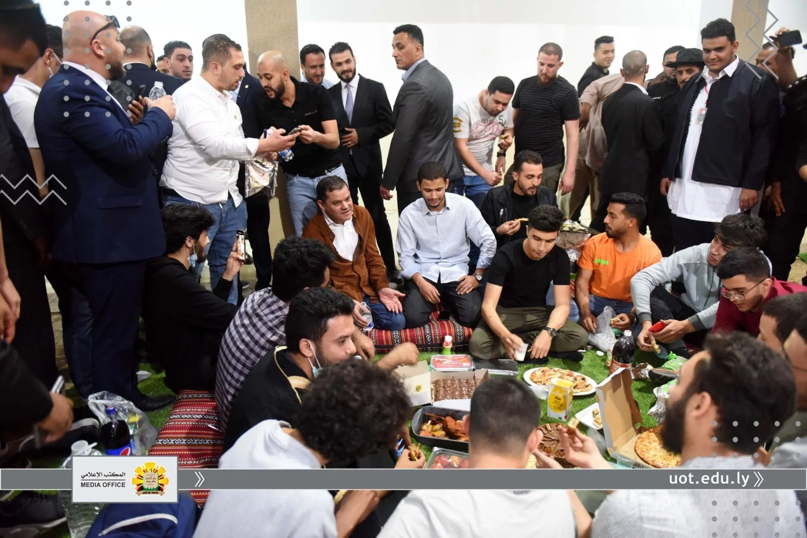 كما تخللت الزيارة إقامة إفطار جماعي علي شرف زيارة رئيس وأعضاء حكومة الوحدة الوطنية بحضور كافة طلبة الجامعات الليبية وموظفي وأعضاء هيئة التدريس ومسؤولي الدولة.