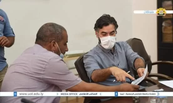 عقد صباح اليوم الثلاثاء بقاعة مركز اللغات ،الاجتماع الدوري للسيد الكاتب العام "أ.أيمن إبراهيم " ومدير مكتب الشؤون الادارية "م. علي الصومادي"، وذلك بحضور مدراء مكاتب الشؤون الإدارية والمالية بالكليات.