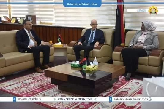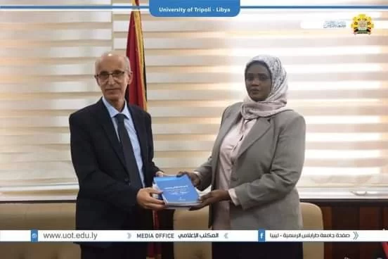 وكان في استقبالها السيد أ.د. خالد عون رئيس جامعة طرابلس والسيد د. طلال الزرقاني وكيل الشؤون العلمية بالجامعة والسيد أ. عبدالعاطي طبطابة مدير إدارة النشاط العام بجامعة طرابلس والسيدة د.ايمان الساحلي وكيلة كلية الفنون والإعلام بجامعة طرابلس.