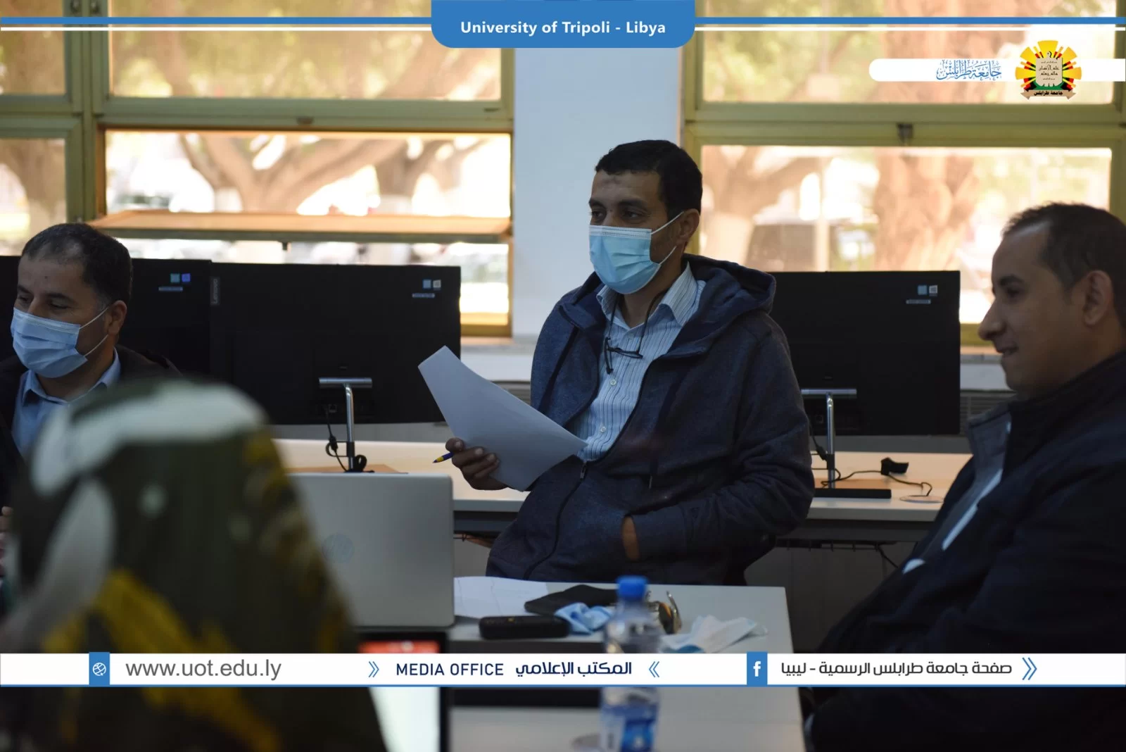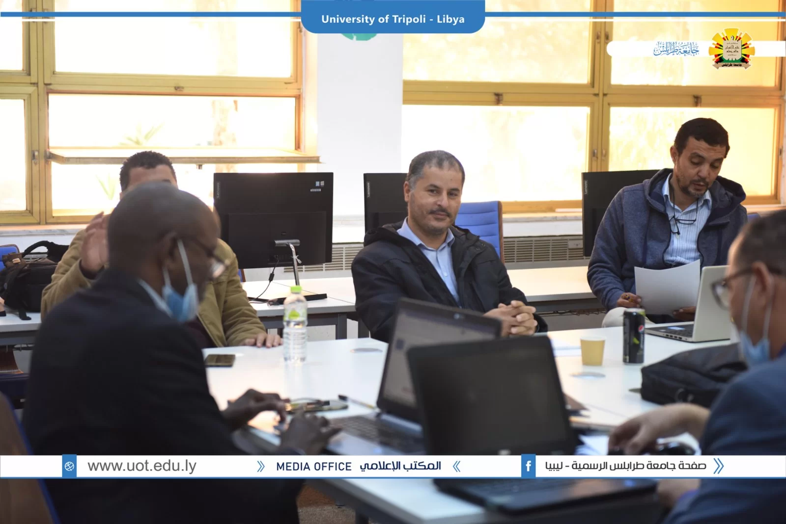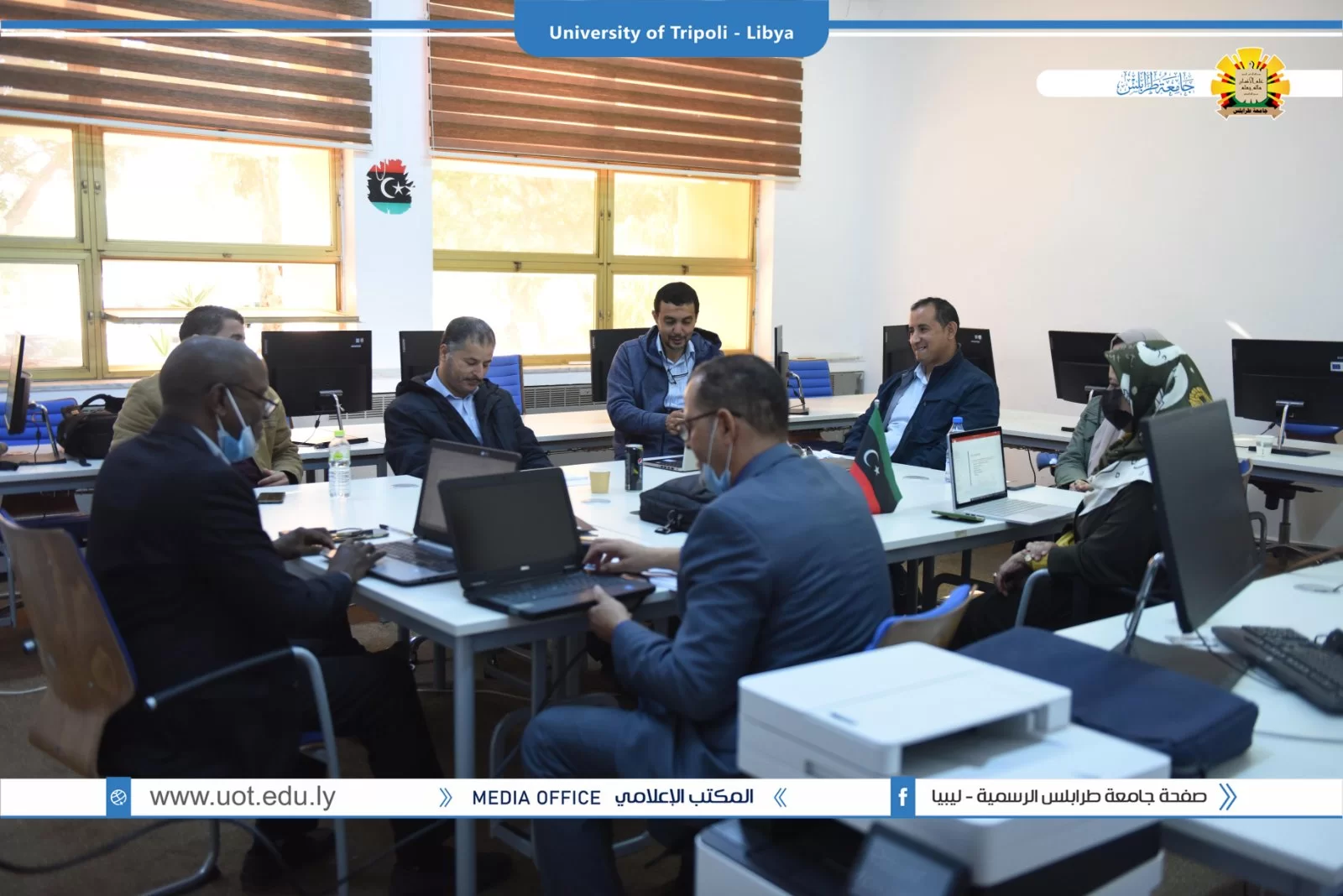 عُقد صباح اليوم الخميس الموافق 02/12/2021م بقاعة التواصل بمكتب التعاون الدولي بجامعة طرابلس زيارة ميدانية تقديمية لمشاريع بناء القدرات بجامعة طرابلس والمدعومة من وحدة المشروعات بالاتحاد الاوروبي. شارك في الزيارة السيد منسق مكتب ايراسموس د.علي باكير والسيد مدير المشروعات بالمكتب أ.د الصديق الشحومي ومن جانب جامعة طرابلس شارك فريق المكتب التعاون الدولي ومنسقو المشاريع بالجامعة تم عرض ملخص للمشاريع وشمل الأهداف والتحديات وإقتراح الحلول لمواجهة الصعوبات.