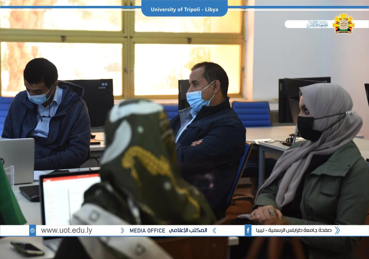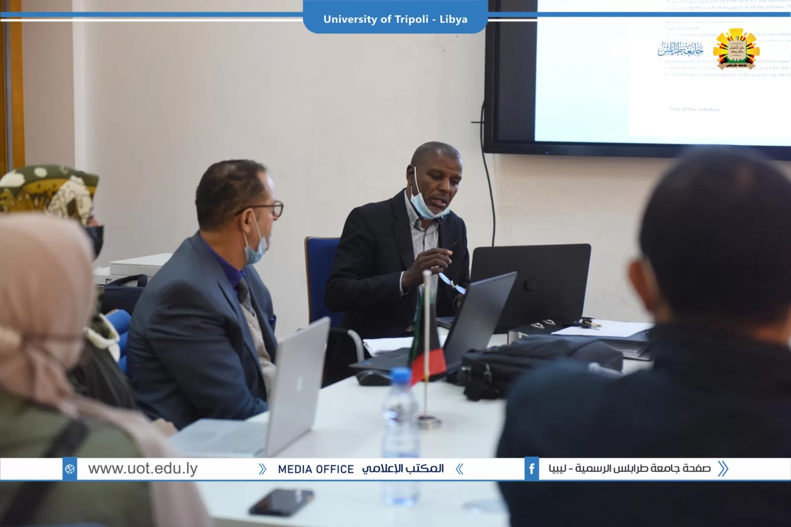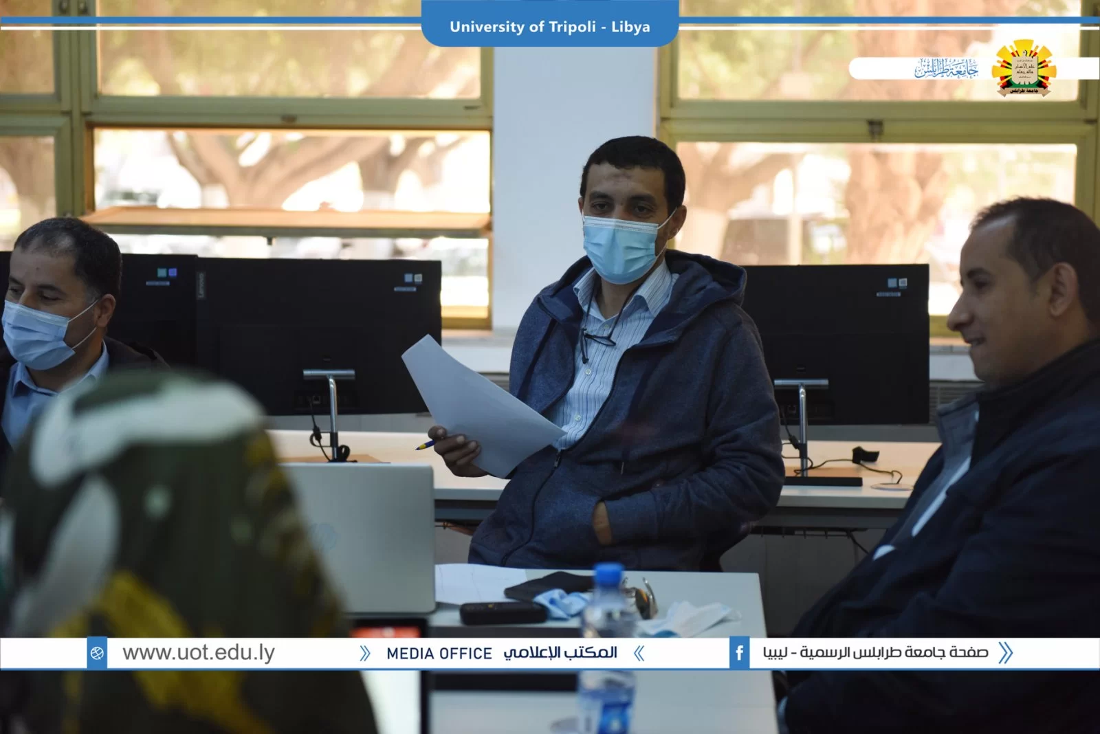 عُقد صباح اليوم الخميس الموافق 02/12/2021م بقاعة التواصل بمكتب التعاون الدولي بجامعة طرابلس زيارة ميدانية تقديمية لمشاريع بناء القدرات بجامعة طرابلس والمدعومة من وحدة المشروعات بالاتحاد الاوروبي. شارك في الزيارة السيد منسق مكتب ايراسموس د.علي باكير والسيد مدير المشروعات بالمكتب أ.د الصديق الشحومي ومن جانب جامعة طرابلس شارك فريق المكتب التعاون الدولي ومنسقو المشاريع بالجامعة تم عرض ملخص للمشاريع وشمل الأهداف والتحديات وإقتراح الحلول لمواجهة الصعوبات.