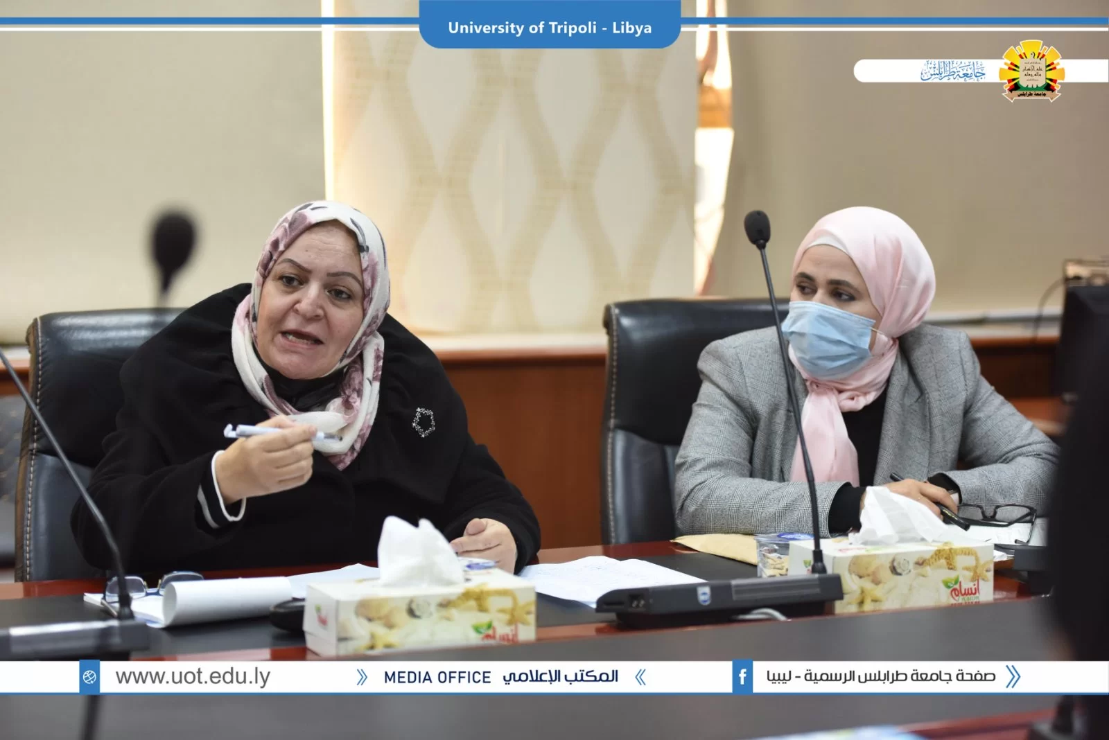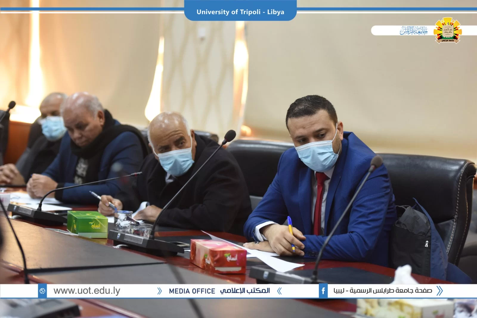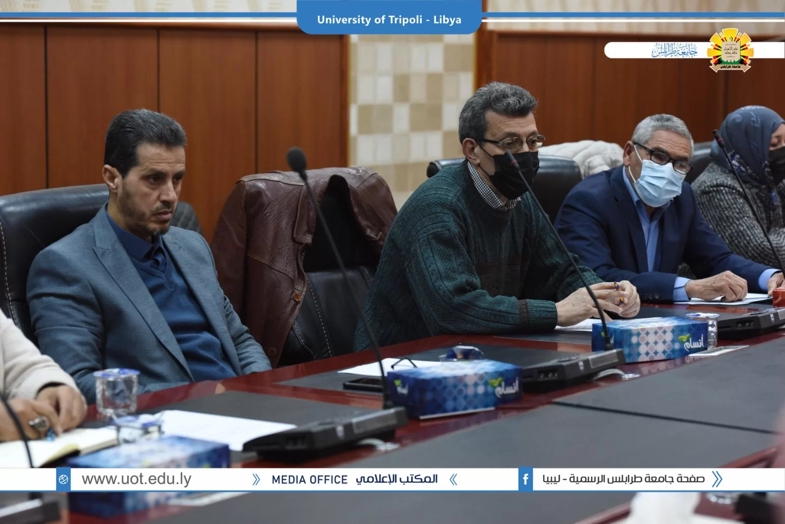 عقد صباح اليوم الاربعاء 19.1.2022 بقاعة الاجتماعات الرئيسية بادارة جامعة طرابلس الاجتماع الاول للعام 2022 لوكلاء الشؤون العلمية بالكليات الذي ترأسه الدكتور طلال محمد الزرقاني وكيل الشؤون العلمية بالجامعة وقد تم افتتاح الاجتماع بحضور السيد ا.د. خالد عون رئيس جامعة طرابس الذي بدوره شد على ايادي وكلاء الكليات واكد على اهمية دورهم في الرقي بمستوى الجامعة متمنيا لهم التوفيق في المهام الموكلة لهم .وقد تم استئناف الاجتماع برئاسة الدكتور طلال الزرقاني وكيل الشؤون العلمية بالجامعة حيث تم مناقشة جملة من البنود التي من اهمها عرض مهام وصلاحيات وكلاء الكليات واهم ملاحظاتهم وتوصياتهم .كما تم الاتفاق على اجراء اجتماع شهرى لوكلاء؟الكليات مع وكيل الشؤون