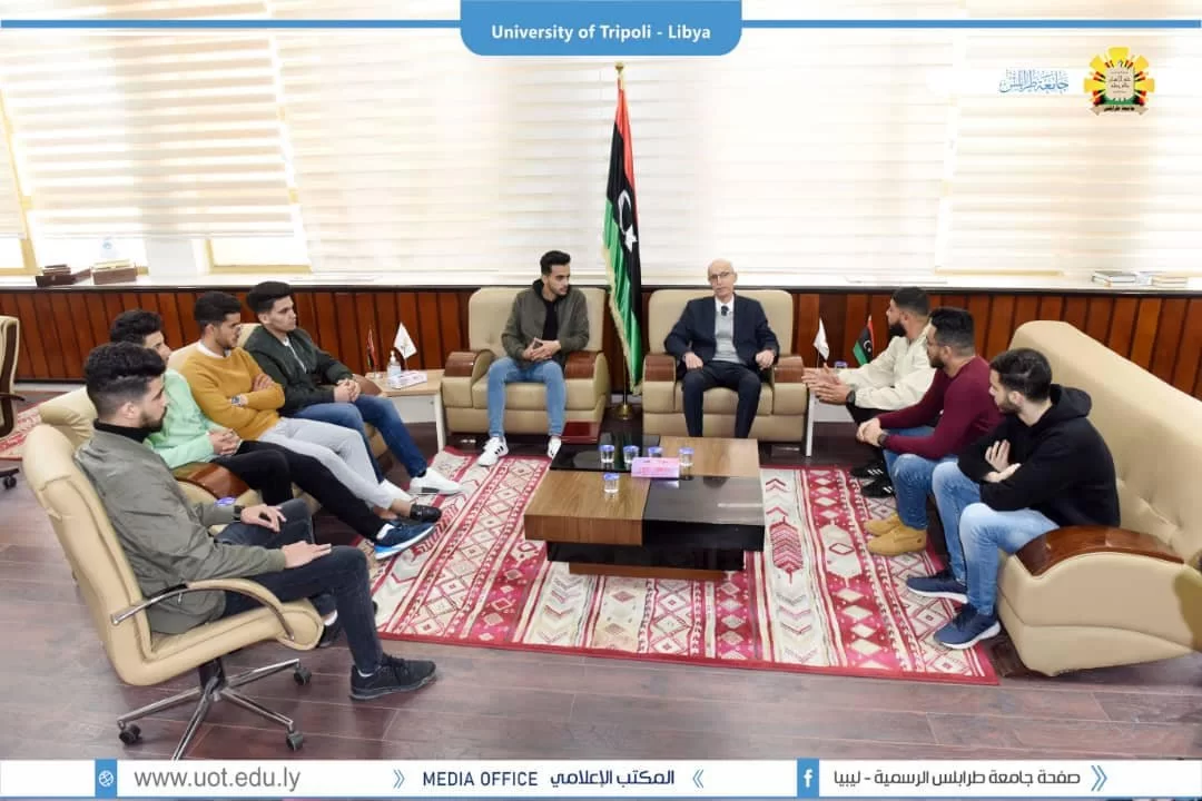 تكريم المنتخب الليبي للمبارزة بمناسبة احراز الميدالية الفضية بالبطولة الافريقية للعبة. 03/مارس/2022م قام الاستاذ الدكتور /خالد عون رئيس جامعة طرابلس بإستقبال اعضاء فريق المنتخب الليبي للمبارزة رفقة طاقم التدريب الخاص بالفريق و بمشاركة السيد مؤيد عاشور نائب رئيس اتحاد طلبة جامعة طرابلس؛ للإشادة بالمجهود الطيب الذي قدمه المنتخب بالبطولة والذي يضم العديد من طلبة جامعة طرابلس.وشارك اعضاء الفريق تجربتهم القارية مع الاستاذ دكتور رئيس الجامعة حيث احرز المنتخب الميدالية الفضية بالبطولة، وكذلك مناقشة خططهم للتطوير من اللعبة و زيادة تصنيف المنتخب عالميا، واختتمت الزيارة بتكريم المنتخب بدرع مقدم من قبل رئاسة الجامعة واتحاد طلبة جامعة طرابلس.