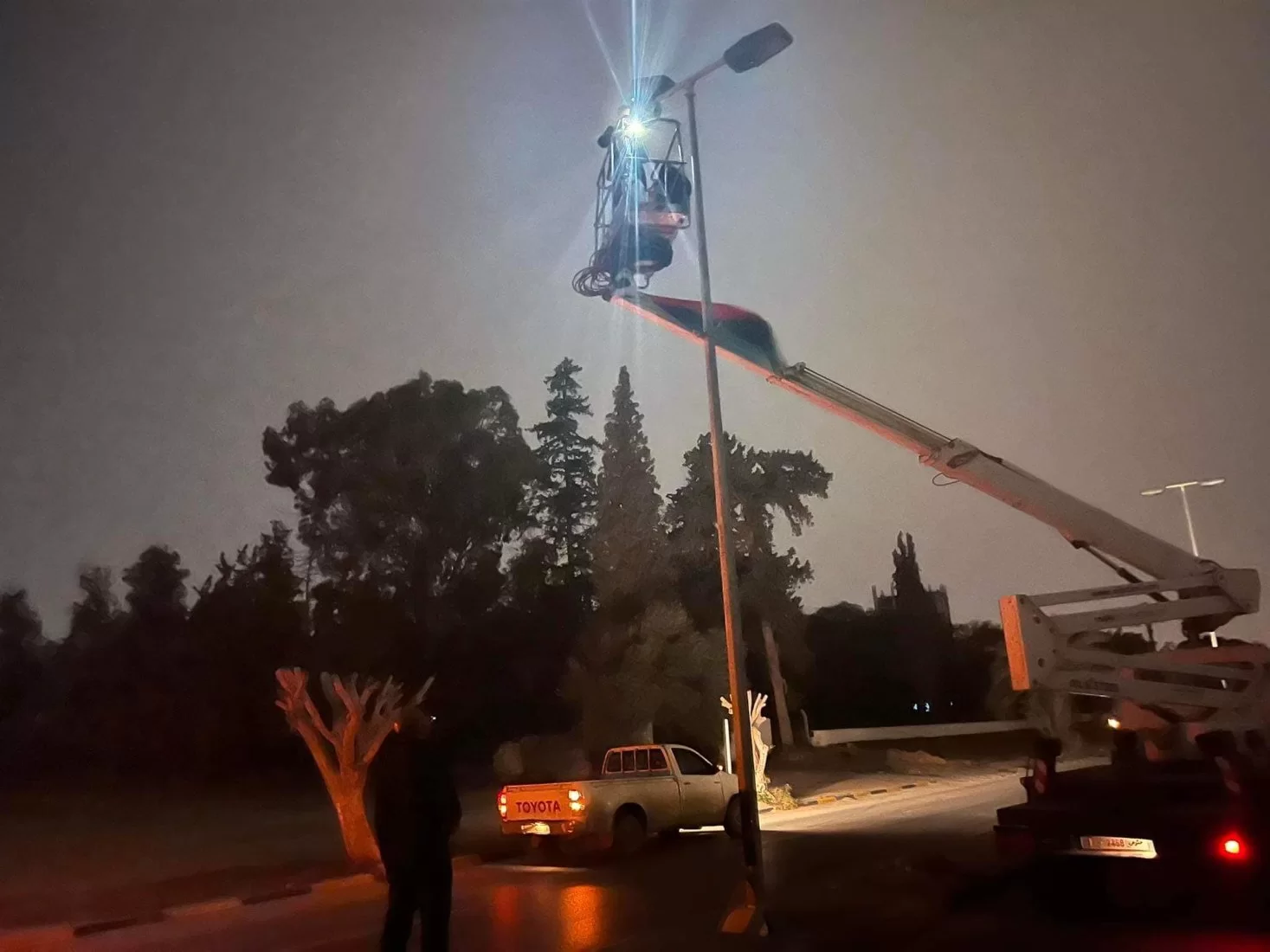ضمن الأعمال الصيانة التي تقوم بها إدارة الشؤون الفنية بجامعة طرابلس بالتعاون مع إدارة الحركة بالجامعة ، انطلاق اعمال تركيب وصيانة أعمدة الإنارة بالجامعة.كل الشكر لجنود إدارة الشؤون الفنية وإدارة الحركة الذين يواصلون الليل بالنهار لتحسين مظهر الجامعة.