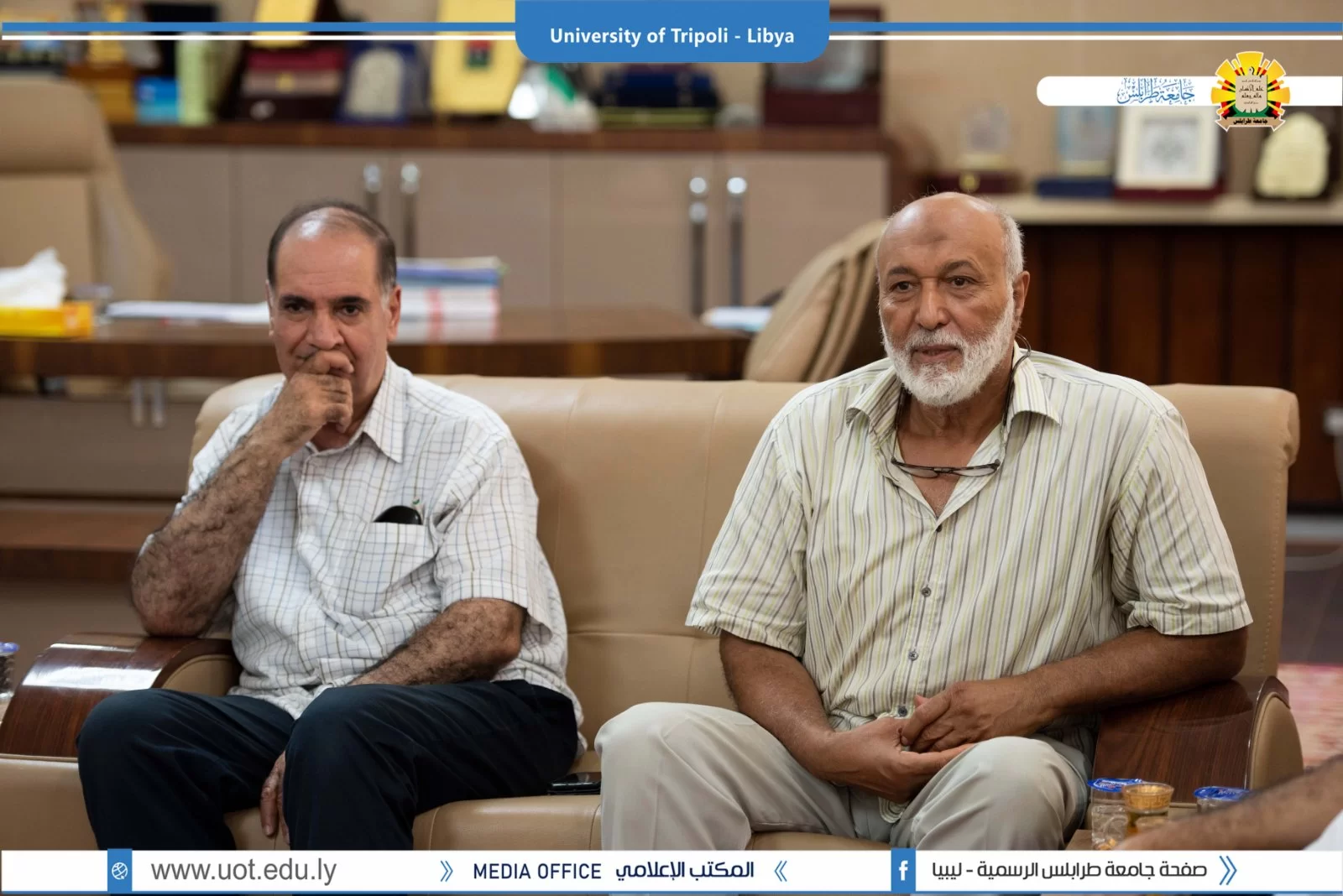 اجتماع تنسيقي للسيد أ.د. خالد عون رئيس جامعة طرابلس والسيد د. خالد راشد عميد كلية الهندسة مع أعضاء من لجان المؤتمر الوطني التاسع لمواد البناء والهندسة الإنشائية، والذي سينعقد بجامعة طرابلس نهاية شهر نوفمبر المقبل.
