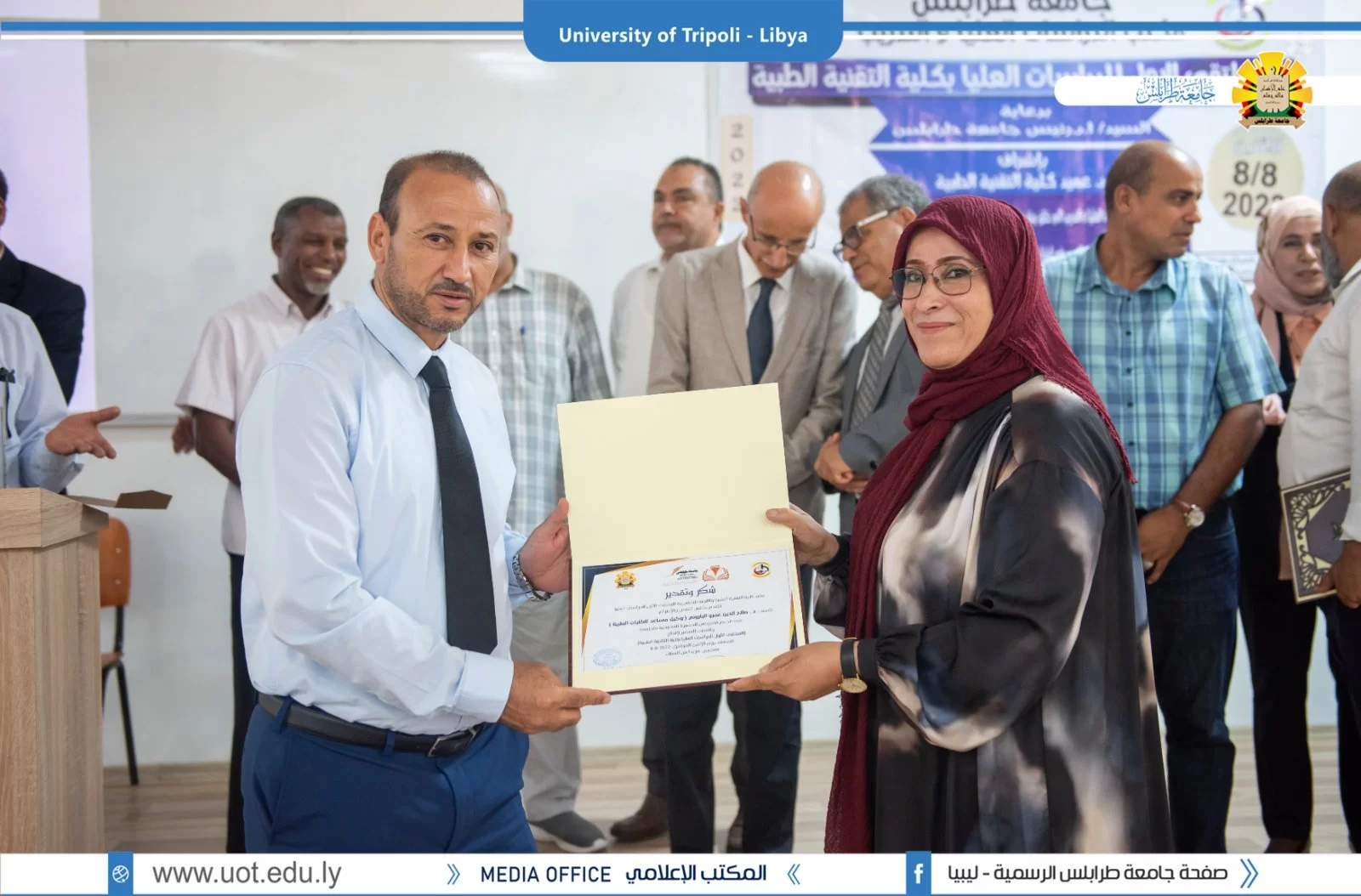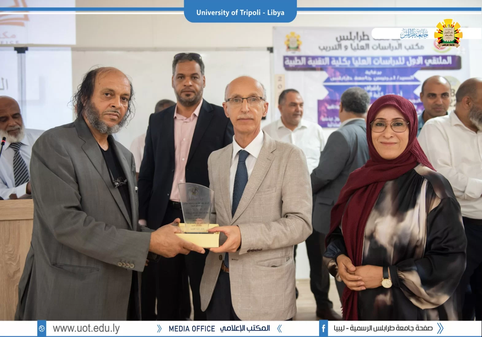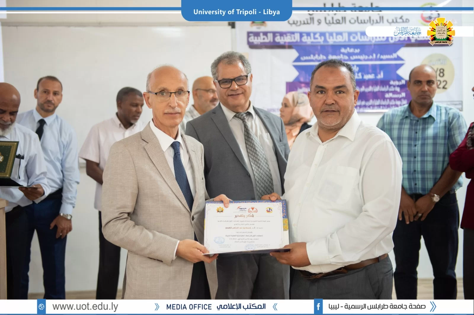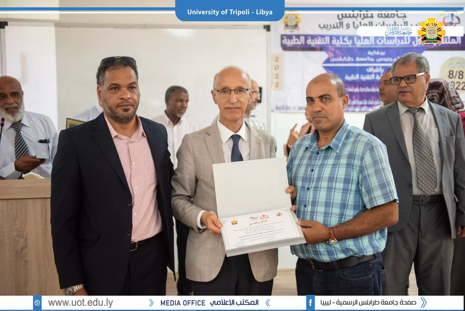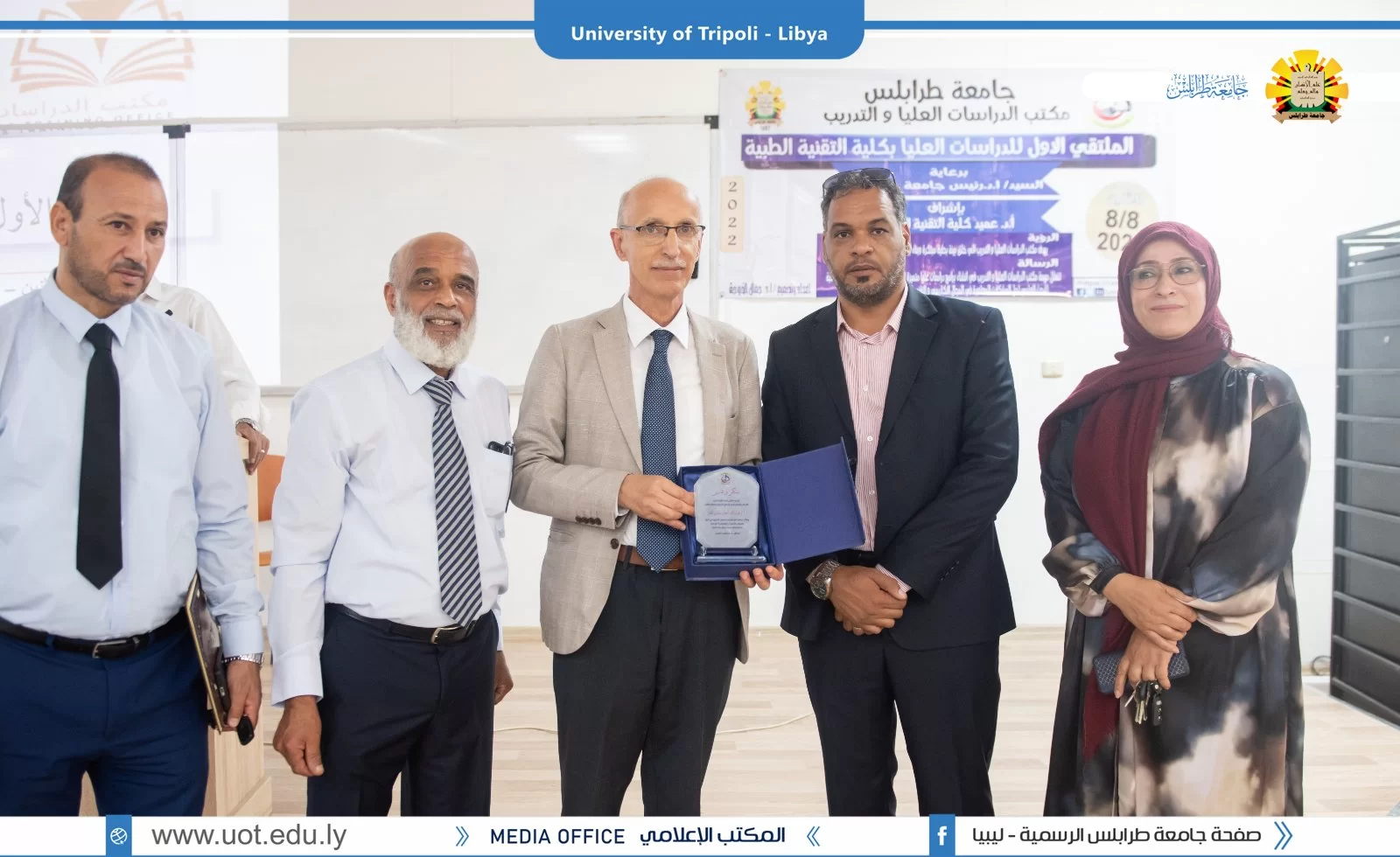 أقيم صباح يوم الإثنين الموافق 8 أغسطس 2022م، بكلية التقنية الطبية ( الملتقى الأول للدراسات العليا بكلية التقنية الطبية) برعاية السيد أ.د. خالد عون رئيس جامعة طرابلس وبحضور السادة الوكلاء بالجامعة والسيدة عميد كلية التقنية الطبية رفقة عدد من عمداء الكليات ومدراء الإدارات بالجامعة.