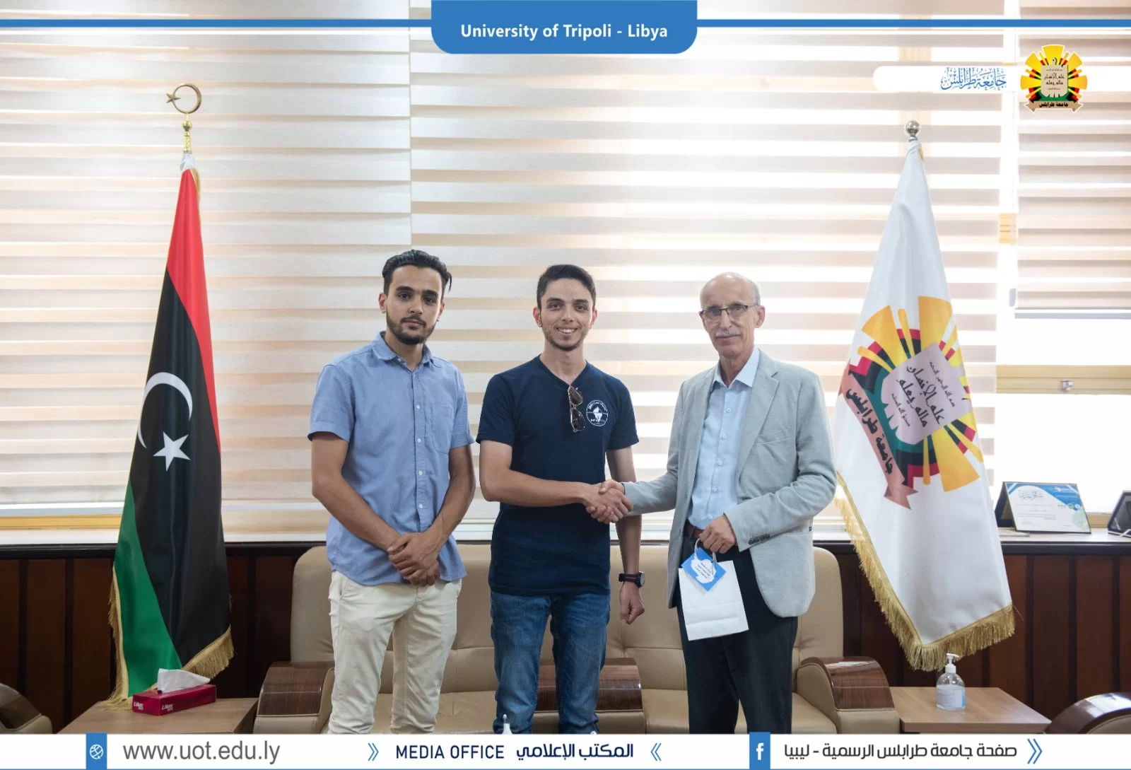 قام اليوم الأربعاء بتاريخ 17 أغسطس 2022 السيد أ.د. خالد عون رئيس جامعة طرابلس رفقة السيد مؤيد فرج عاشور نائب رئيس اتحاد طلبة جامعة طرابلس بتقديم شهادة شكر وتقدير للطالب الليبي زياد الزنداح لكونه أول باحث ليبي يصل قارة القطب الجنوبي "أنتاركتيكا" ضمن بعثة استكشافية لمحطة الابحاث الأرجنتينية، حيث شارك الطالب زياد تجربته مع السيد رئيس الجامعة، كما قام رئيس الجامعة بدوره بتهنئته علي هذا الإنجاز متمنياً له التوفيق في مسعاه العلمي.