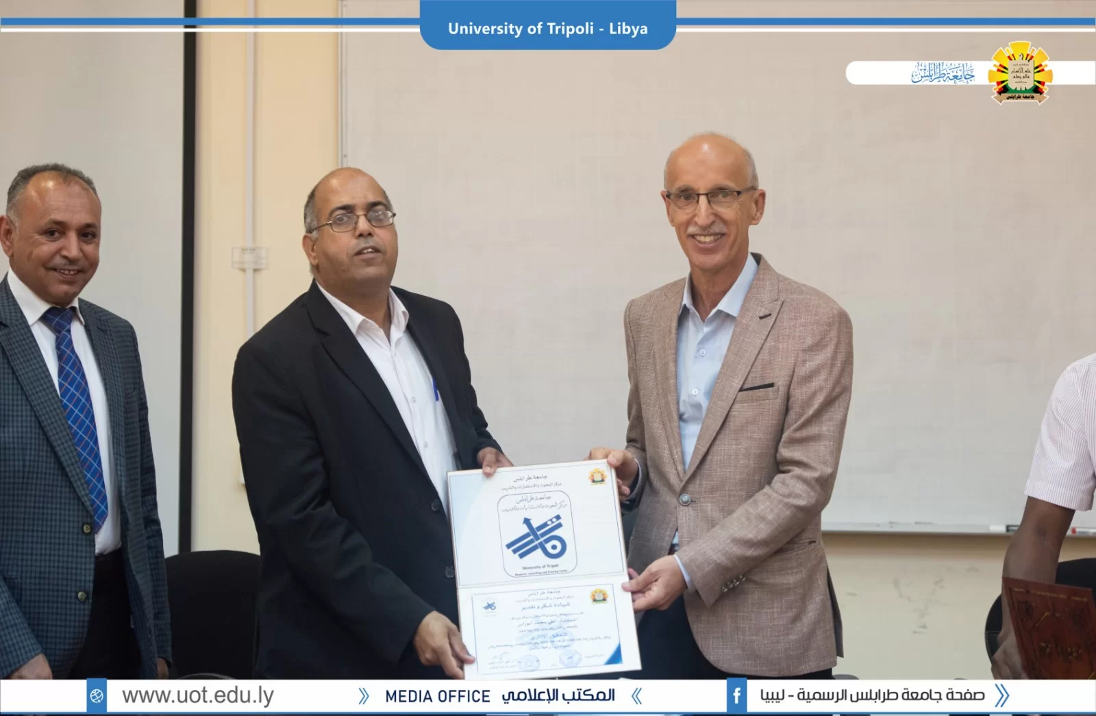 في اطار تفعيل برامج التعاون بين جامعة طرابلس و المؤسسات و الهيئات المختلفة، تم صباح اليوم الخميس الموافق 15 سبتمبر 2022م اختتام الدورة التدريبية في مجال (التحقيق الإداري) لصالح مصرف التجاري الوطني المنطقة الغربية بحضور السيد أ.د. خالد عون رئيس جامعة طرابلس رفقة كلاً من السيد أ. عبد الرحمن سلامة مدير مصرف التجاري الوطني - منطقة طرابلس و السيد أ.د. علي قنون مدير عام مركز البحوث و الاستشارات و التدريب، شمل ختام الدورة بعض الكلمات للسادة الحضور و كذلك تم توزيع الشهائد لمن اجتاز الدورة. كل الشكر و التقدير لكل من ساهم في اتمام و انجاح هذه الدورة التدريبية.