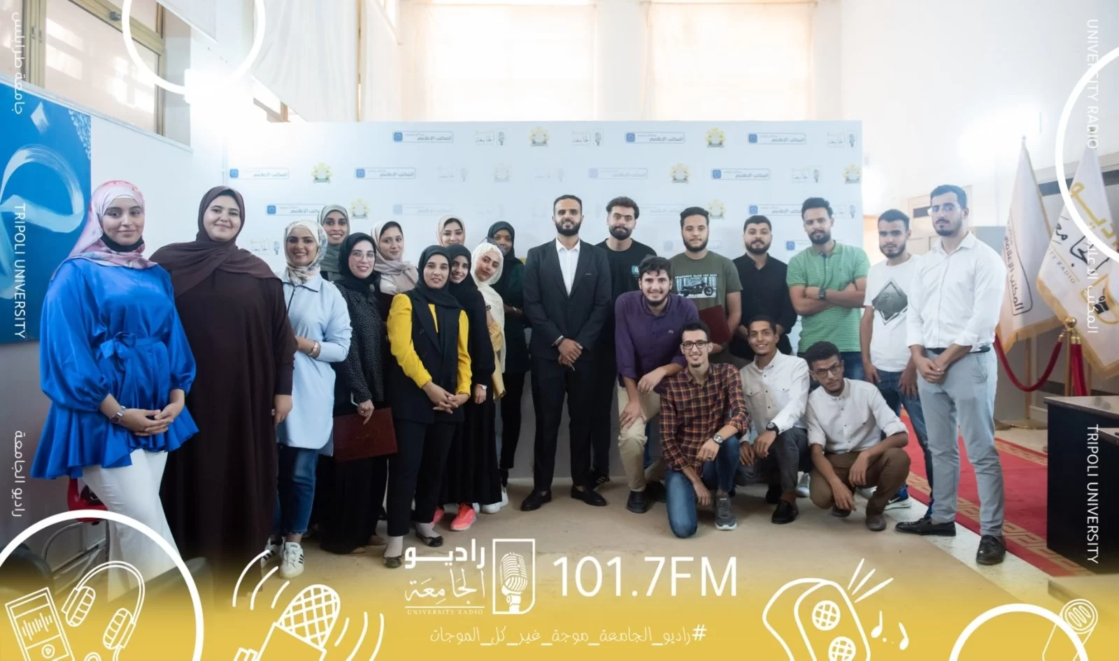 في أجواء تفوحها نسائم التقدير و تسودها اسمى آيات الدعم و العرفان قامت إدارة المكتب الإعلامي بجامعة طرابلس صباح اليوم الأربعاء الموافق 21 سبتمبر 2022م بتكريم الكادر الخاص براديو الجامعة و كافة منتسبيه الذين كانوا بمثابة النبض لإعادة إحياء و تفعيل الراديو، وذلك بعد سلسلة من ورش العمل التي تمت إقامتها الفترة الماضية داخل استديو راديو الجامعة..حيث تم حفل التكريم بحضور كلاً من : السيد أ. عبد الله الترهوني مدير المكتب الإعلامي بالجامعة.. السيد د.طارق قرفال من إدارة راديو الجامعة.. السيد أ. نصر الدين كشيم مدير إدارة المطبوعات بالجامعة.. السيد أ. عبدالمطلب الدغري مدير مكتب الخدمات بالجامعة..و شمل الحفل تكريم المنتسبي المتميزين طيلة فترة عملهم بالراديو وتقدير جهودهم المبذولة، وهم: مراد برقان. محمد آبوستة. عبير البوسيفي. تنسيم المهدي.سائلين الله تعالى دوام التوفيق والمزيد من التميّز للرفع أكتر من مستوى ومحتوى راديو جامعتنا، وتحقيق الهدف المنشود بأدق تفاصيل الإبداع.