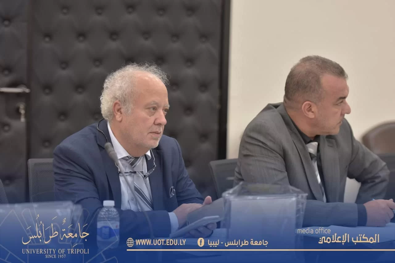أقيم صباح اليوم الاثنين الموافق 21 نوفمبر 2022م بصالة اجتماعات رئاسة الجامعة الاجتماع الحادي عشر العادي للعام 2022م، بحضور السيد أ.د. خالد عون رئيس جامعة طرابلس والسادة الوكلاء وعمداء الكليات بالجامعة رفقة السادة رؤساء النقابات بالجامعة والسيد المسجل العام بالجامعة. حيث نوقشت عدة ملفات هامة أبرزها مناقشة طلب المركز الليبي الدولي للتدريب لإحتياجات الخريجين لتأهيلهم لسوق العمل، تشكيل لجان داخل الكليات للعمل على متطلبات ترقية الموقع الإلكتروني للجامعة، بالإضافة إلى عرض ومناقشة عدة مراسلات أبرزها ( الطلبة المجهرين، دمج بعض من المقررات الدراسية بكلية الصيدلة، اعتماد الاسم الصحيح لقسم التجارة الإلكترونية بكلية الاقتصاد والعلوم السياسية، عرض كلية التريبة طرابلس بشأن إقامة مؤتمر قسم اللغة الإنجليزية بالإضافة إلى عدد من مراسلات الوزارة). كما تطرق المجلس في بند الاتفاقيات إلى اعتماد اتفاقيات التعاون العلمي مع عدد من الجامعات الاندونيسية. بالإضافة إلى اعتماد عدد من محاضر الاجتماعات للمجالس العلمية بالكليات، ختاماً تعديل البرنامج الدراسي 2022م / 2023م.