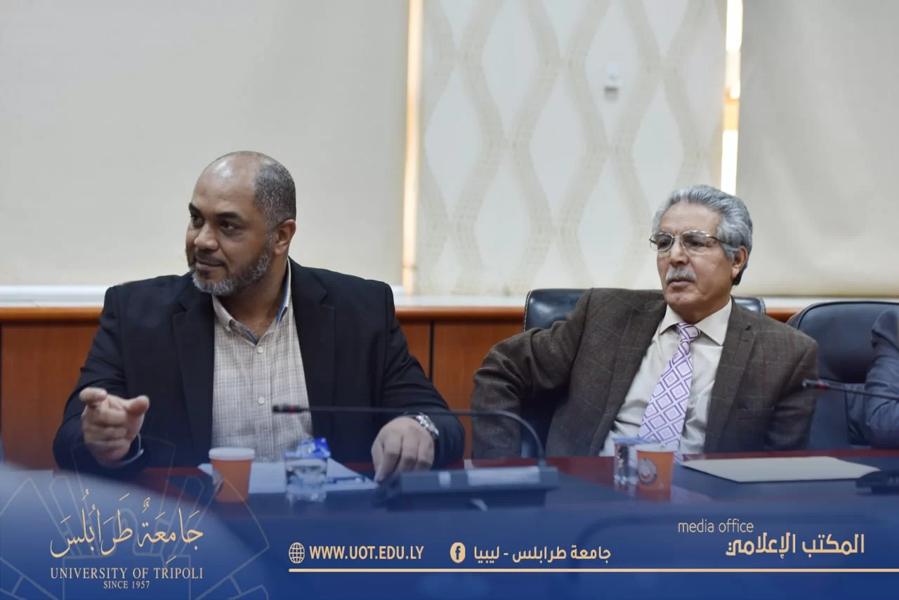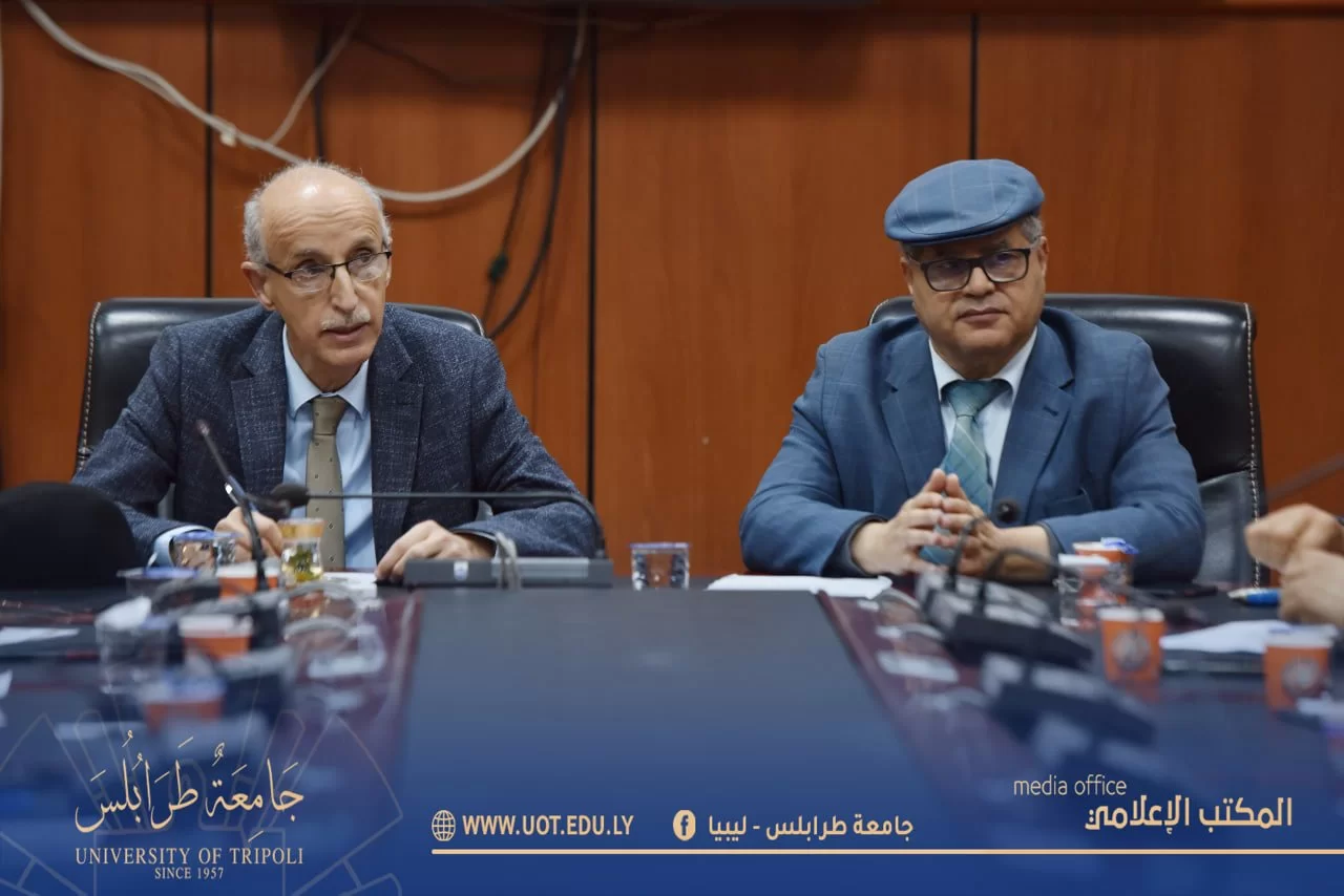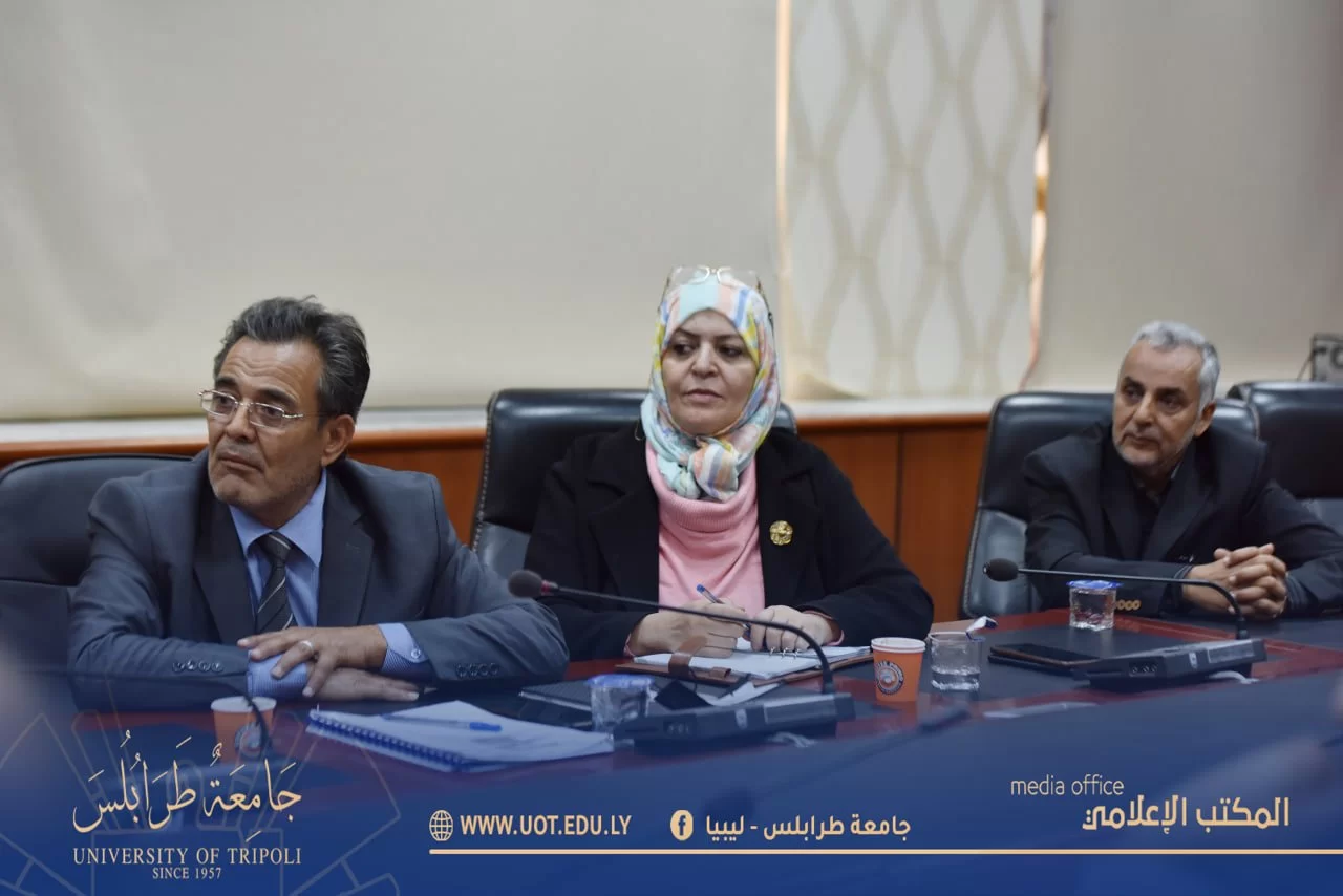 عقد صباح اليوم الاثنين الموافق 2 يناير 2023 م اجتماع اللجنة العُليا للمرحلة التمهيدية برئاسة السيد أ.د. خالد عون رئيس جامعة طرابلس وبحضور السيد د. خالد غومة وكيل الجامعة للشؤون العلمية والسيد د. علي مصدق وكيل الجامعة للشؤون الطلابية والسيد أ.د. رمضان الجدي رئيس المرحلة وعميد كلية العلوم وعمداء الكليات ذات العلاقة بالمرحلة التمهيدية ومسجل المرحلة التمهيدية وكذلك رئيس قسم الدراسة والامتحانات ومنسقي المرحلة التمهيدية ( التطبيقية والطبية ) ومنسقي المقررات ومنسق لجنة المدرجات هذا وقد تناول الاجتماع متابعة المرحلة التمهيدية وكيفية حل الاشكاليات التي قد تواجه بعض الأساتذة وأيضاً تمت مناقشة الحلول لمشاكل المستحقات المالية للأساتذة وتمكن الحضور من الوصول لكل الحلول المناسبة والممكنة وأن أمور الدراسة ستسير بالشكل المطلوب .