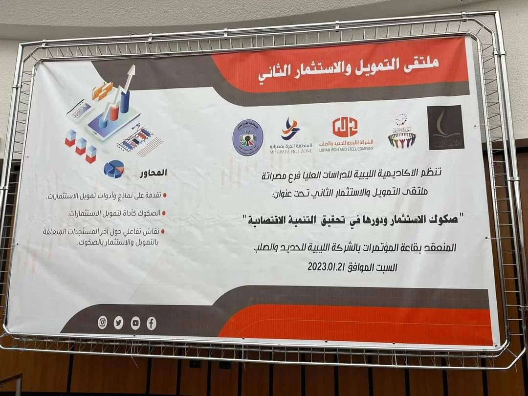 شاركت صباح اليوم السبت الموافق 21 يناير 2023 م كلية الاقتصاد والعلوم السياسية بجامعة طرابلس بملتقى التمويل والاستثمار الثاني تحت عنوان: "صكوك الاستثمار ودورها في تحقيق التنمية الاقتصادية" المُقام بتنظيم الأكاديمية الليبية للدراسات العُليا فرع مصراتة، هذا وقد شاركت الكلية بالملتقى ممثلة لجامعة طرابلس، حيث ركز الملتقى على محاور مهمة ذات صلة بالموضوع حيث استهلت برامج الملتقى بتقدمة على نماذج وأدوات تمويل الاستثمارات مروراً بالصكوك كأداة لتمويل الاستثمارات وختاماً بنقاش تفاعلي حول أخر المستجدات المتعلقة بالتمويل والاستثمار بالصكوك.