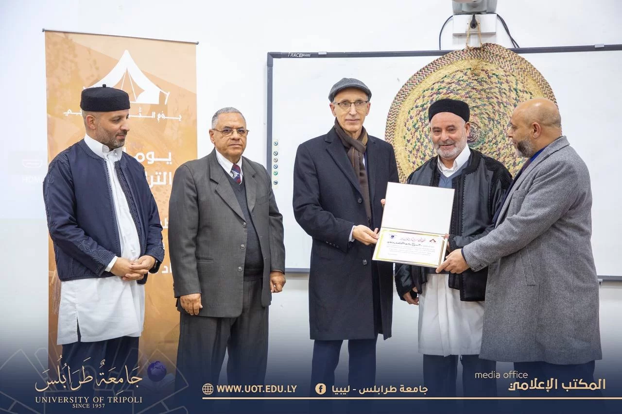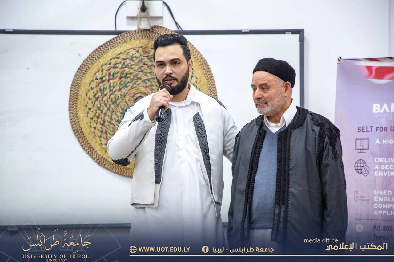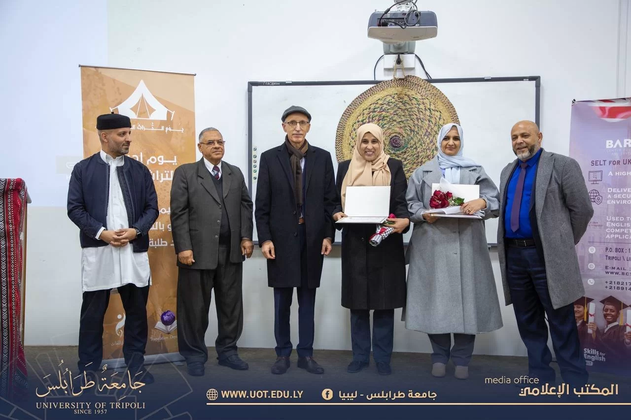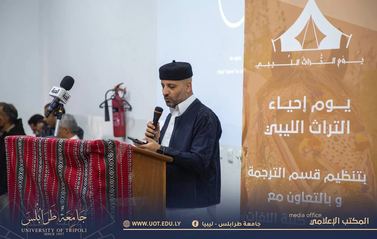 أقيم صباح اليوم الأربعاء الموافق 15 فبراير 2023 م فعاليات يوم ثقافي صرف تحت عنوان "يوم إحياء التراث الليبي" بتنظيم وإشراف قسم الترجمة بكلية اللغات - جامعة طرابلس بحضور السيد أ.د. خالد عون رئيس جامعة طرابلس رفقة السيد د. خالد غومة وكيل الجامعة للشؤون العلمية والسيد أ. أيمن إبراهيم الكاتب العام بالجامعة والسيد د. مصباح فرفر عميد كلية اللغات والسيدة د. هدى تامر وكيل كلية اللغات والسيد د. محمد اللافي رئيس قسم الترجمة والسيد أحمد أبو رقيقة رئيس اتحاد طلبة جامعة طرابلس و أعضاء هيئة التدريس بالكلية وعدد من الضيوف والمهتمين.