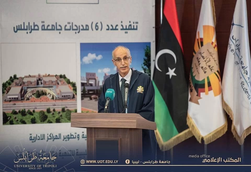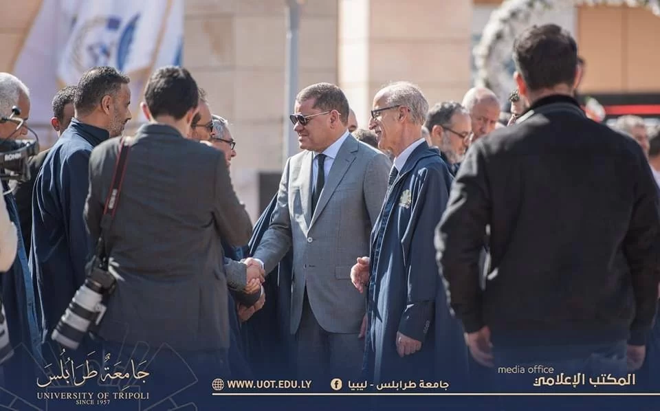 افتتح مساء اليوم الثلاثاء الموافق 21 فبراير 2023 م مجمع مدرجات جامعة طرابلس الجُدد بحضور السيد م. عبد الحميد الدبيبة رئيس الوزراء رفقة السيد الصديق الكبير محافظ المصرف المركزي والسيد خالد شكشك رئيس ديوان المحاسبة، حيث كان في استقبالهم السيد د. عمران القيب وزير التعليم العالي والبحث العلمي والسيد أ.د. خالد عون رئيس جامعة طرابلس رفقة السادة وكلاء الجامعة وعمداء الكليات والسيد رئيس اتحاد طلبة جامعة طرابلس والاتحادات الفرعية بالكليات.