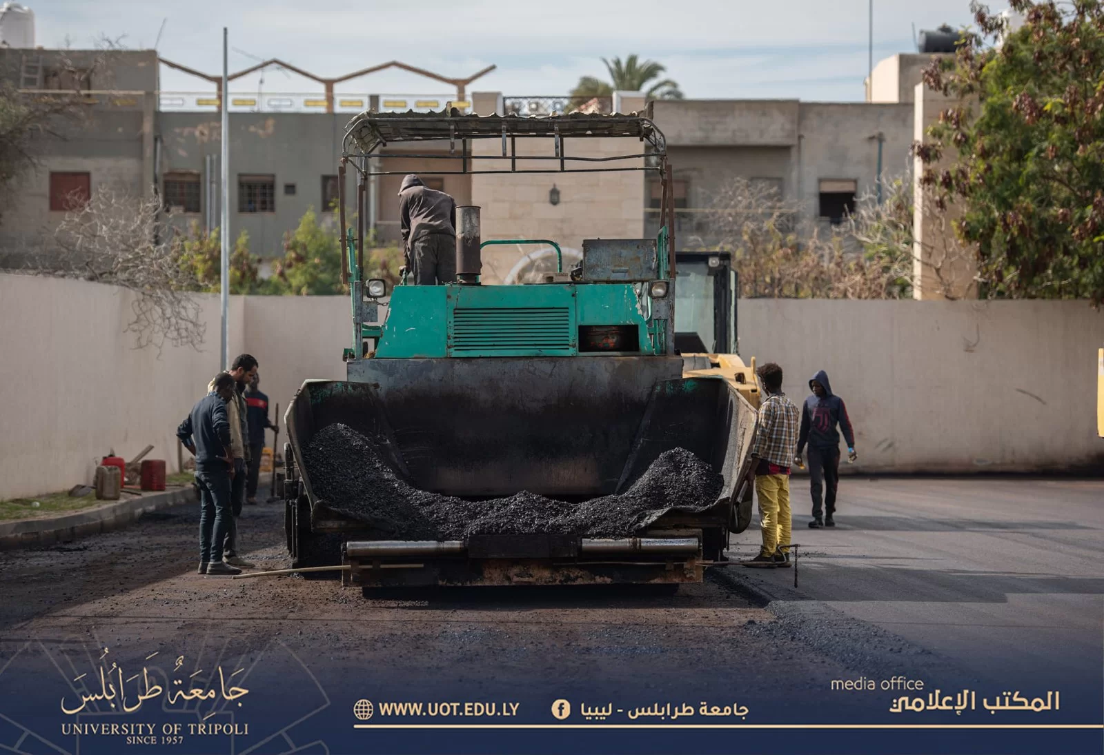 لا تزال عمليات الصيانة والتطوير مستمرة داخل أسوار جامعة طرابلس؛ حيث وصلت في سلمها التصاعدي إلى كليتي الفنون والإعلام، فقد شملت الصيانة هذه المرة تعبيد ورصف موقف السيارات الخاص بالكليتين.
