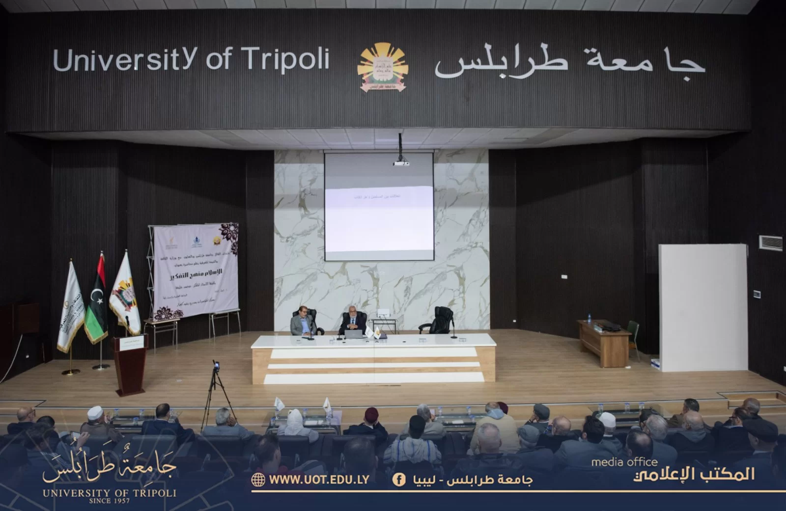 أقيمت مساء اليوم الأحد الموافق 2 أبريل 2023 م محاضرة علمية بعنوان: "الإسلام منهج تفكير" ضمن نشاط جامعة طرابلس الثقافي؛ حيث استضاف المنتدى الثقافي السيد الأستاذ والمفكر المحامي محمد خليفة الذي ألقى المحاضرة في أمسية رمضانية، وقد تناولت المحاضرة دراسة مقارنة للأديان وموقف منهج تفكير الإسلام في الكثير من القضايا الفكرية والجدلية، وتميزت المحاضرة بمشاركات الحضور القيمة ومداخلاتهم التي أثبتت دور وحرص جامعة طرابلس على نشر المعرفة والثقافة الرصينة خدمةً للدين الإسلامي الذي يحرر العقل ويكفل الإنتاج الفكري السليم.