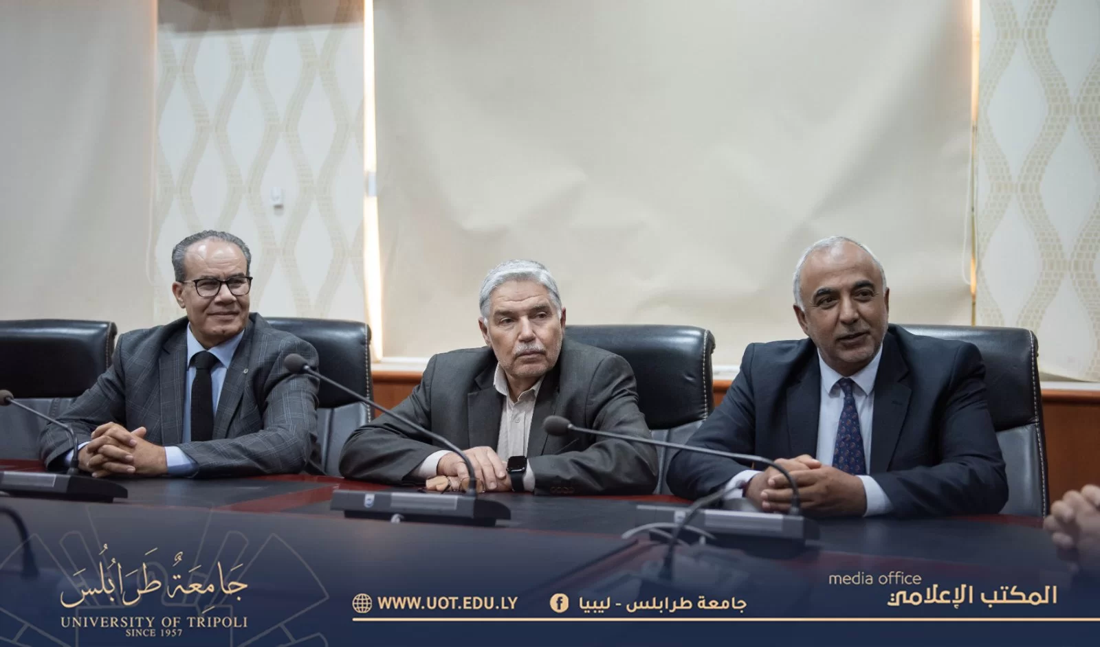 On Monday afternoon, April 3, 2023, a scientific cooperation agreement was signed between the Faculty of Science - University of Tripoli and the Libyan Plasma Research Center of the Libyan Authority for Scientific Research, with the approval of Prof. Dr. Khaled Aoun, President of the University, and in the presence of: Prof. Dr. Ramadan Al-Jadi, Dean of the Faculty of Science, and the Director General of the Libyan Authority for Scientific Research. The agreement comes within the framework of fruitful cooperation between university institutions and research centers to serve the scientific research of both parties and graduate students. It is worth noting that both parties emphasized their determination to implement the agreement in the required manner, and to provide what benefits and benefits both institutions and all their segments.