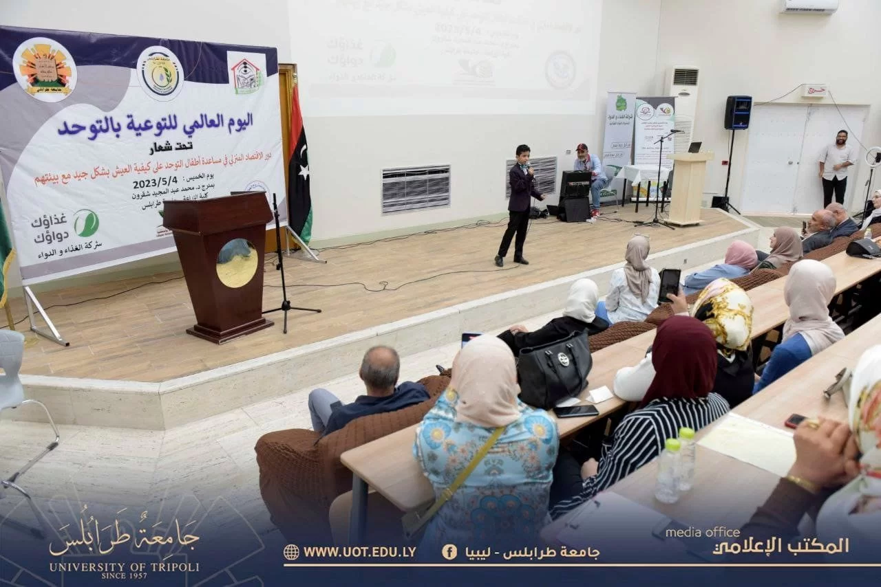 أقيمت صباح يوم الخميس الموافق 4 مايو 2023 م بكلية الزراعة - جامعة طرابلس احتفالية قسم الاقتصاد المنزلي باليوم العالمي للتوحد بحضور كلاً من السيد رئيس جامعة طرابلس والسيدة عميد كلية الزراعة ولفيف من موظفي وأعضاء هيئة تدريس بالجامعة والسادة الحضور .حيث تخللت الاحتفالية العديد من المحاضرات العلمية والمناشط الثقافية.