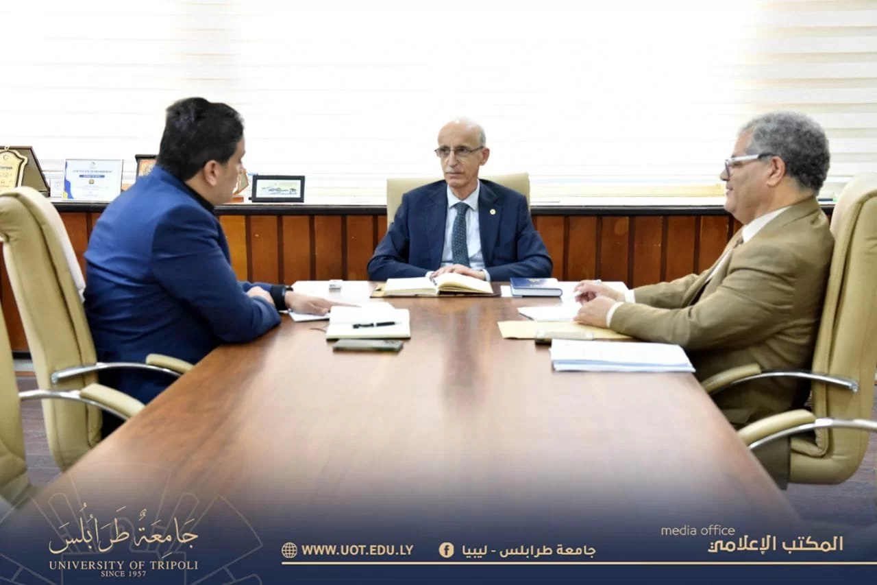 عقد صباح اليوم الخميس الموافق 11 مايو 2023 م اجتماع بمكتب السيد رئيس الجامعة والذي ضم كلاً من السيد أ.د. خالد عون رئيس جامعة طرابلس والسيد أ.د. رمضان الجدي عميد كلية العلوم والسيد د. سمير العامري المدير الإقليمي لمنظمة شمال افريقيا بشركة شليمبرجير النفطية العالمية، حيث تمحور الاجتماع حول أوجه التعاون المشترك بين الجامعة والشركة في مجال البرمجيات والتقنيات الحديثة التي تمتلكها الشركة.وقد تناول أيضاً الاجتماع السعي لتوقيع اتفاقية تعاون بين الطرفين، حيث سيتم التوقيع عليها نهاية الأسبوع المُقبل، كما تم تسليط الضوء على أوجه التعاون في شكل المواد التي ستكون مدرجة بالاتفاقية.