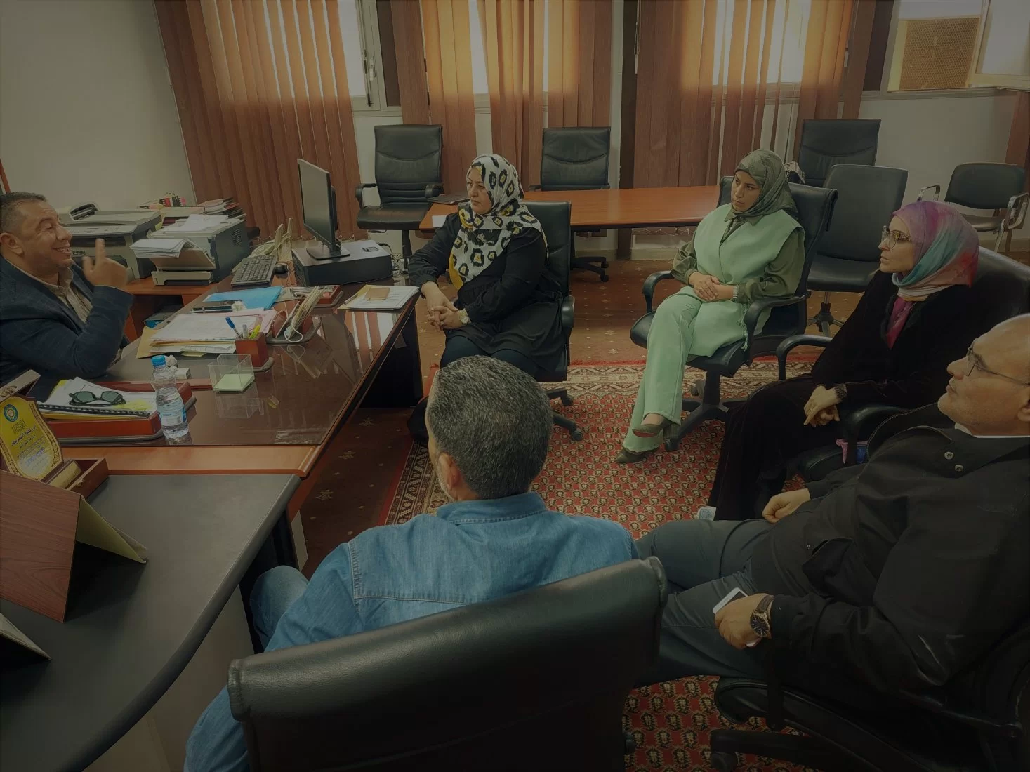 عُقد اليوم الاربعاء الموافق 26/4/2023 م بقاعة الاجتماعات الرئيسية بكلية التمريض جامعة طرابلس الإجتماع الدوري بحضور كلاً من: السيد: عميد كلية التمريض ومدير مكتب الدراسات العليا و وكيل الشؤون العلمية و مدير مكتب شوؤن اعضاء هيئة التدريس ومدير مكتب الدراسة والامتحانات