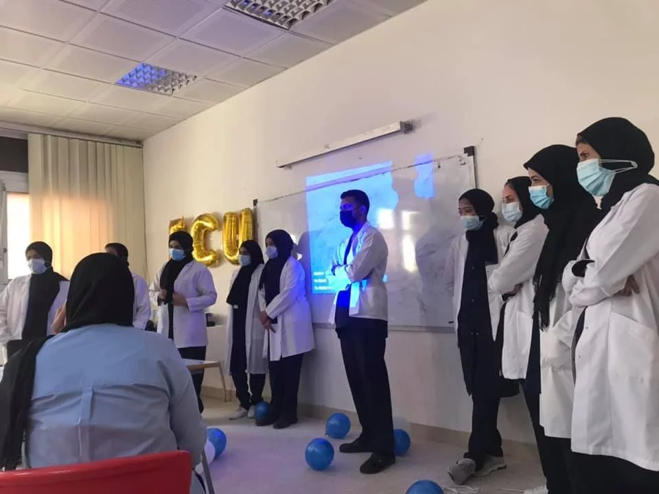 قام طلاب الفصل الدراسي الثامن بكافة الاقسام الدراسيه ف الكليه بمناقشه الجزء العملي case study اليوم بعد قيامهم بفترة تدريب عملي بكافه مستشفيات طرابلس لي مده خمسه فصول دراسيه نسأل الله لهم التوفيق والسداد في باقي مشوارهم.