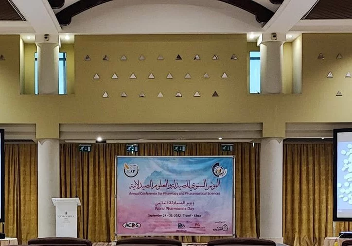 شارك عدد من أعضاء هيئة التدريس بكلية الصيدلية في فعاليات المؤتمر السنوي للصيدلة المقام بفندق كورنثيا يومي 24 و 25-9-2022 وذلك بالتزامن مع اليوم العالمي للصيادلة حيث قدم كل من أ.د عبد الفتاح قاباج و أ.د امال بن كورة و أ.د جمال المزوغي محاضرات مختلفة حول التعليم الصيدلي وذلك بحضور