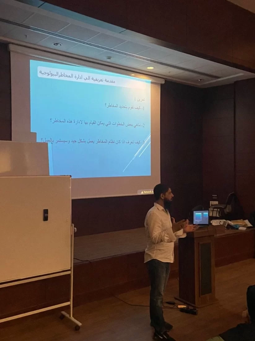 أقيمت اليوم ورشة عمل تدريبية تفاعلية حول تقييم وإدارة المخاطر البيولوجية للمختبرات مع المدربين: د. عبد الحميد الشريف، و د. وليد السعداوي، والتي استهدفت مساعدي البحاث والفنيين بكلية الصيدلة بالتوفيق للجميع