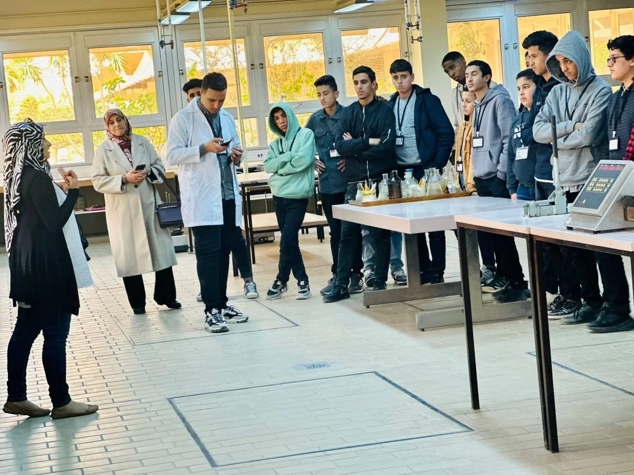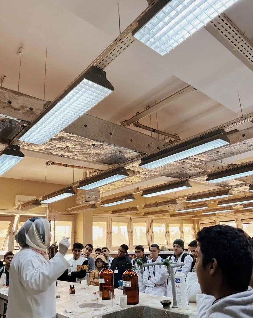 استقبال طلبة مدرسة علي وريث الثانوية للبنين لمعامل كلية الصيدلة.
