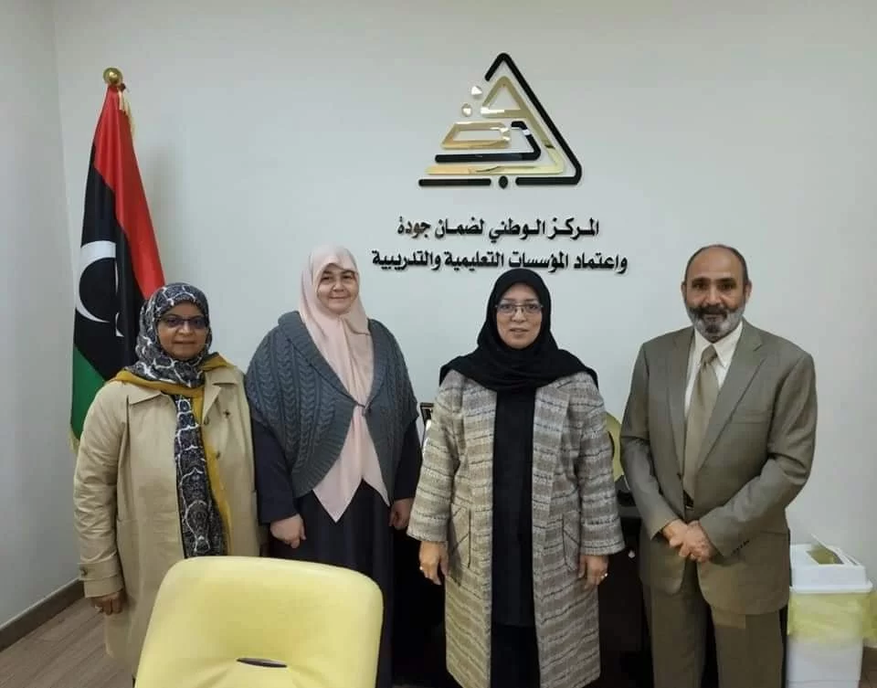 وكلا من الدكتورة نهلة الأبيض والدكتورة فادية محمد الجعفري، منسقتي الجودة بالكلية، والدكتور مصطفي أبورقيبة - ادارة الاعتماد.