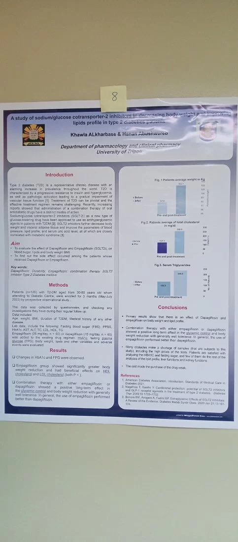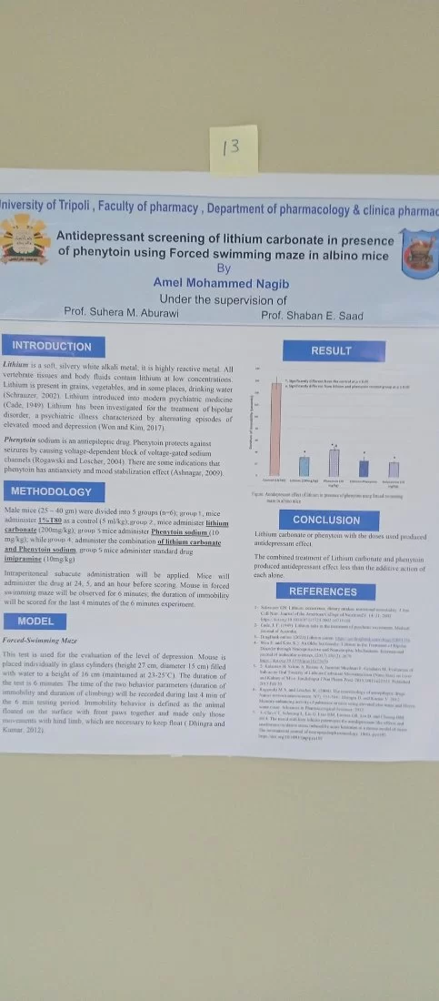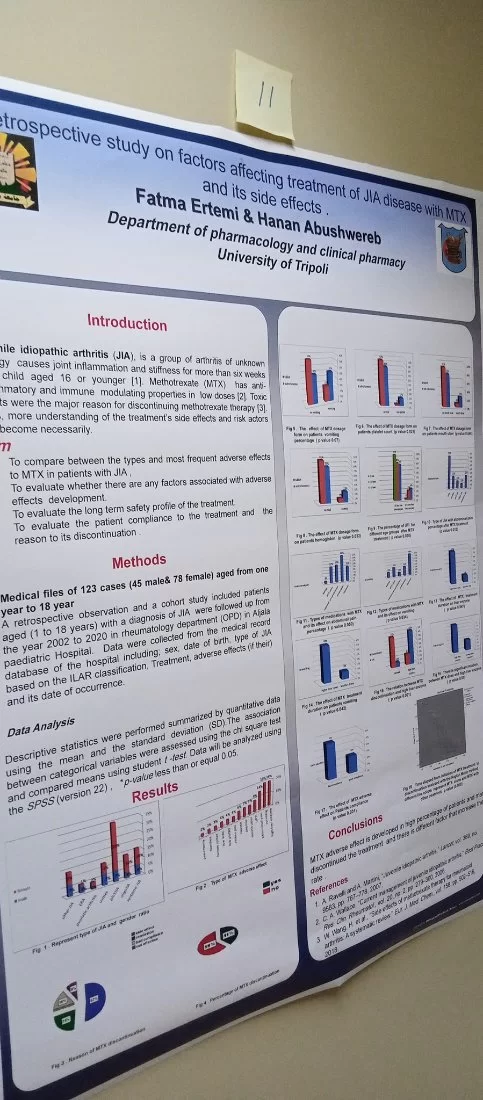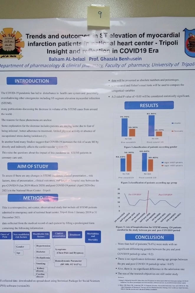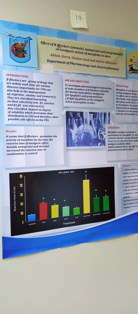 بحضور أ د عميد كلية الصيدلة والسادة أعضاء هيئة التدريس وعددا من الضيوف المدعوين . أقيم صباح الخميس الموافق 2022/6/9 ماليوم العلمي الخاص بقسم علم الأدوية والصيدلة السريرية استهلت د. حنان أبوشويرب رئيس اللجنة التحضيرية اليوم العلمي بكلمة الإفتتاحية تلتها كلمة لرئيس القسم أ.دنصرالدين الرياني والسيد عميد الكلية أ د يوسف المدني و أ د عمران فهيد مدير مكتب الدراسات العليا بالكلية . رحب الحاضرون بالأستاذ الدكتور عبدالله الهويجي وقدموا له الشكر على تلبيته للدعوة . -وتضمن اليوم عرض للأحاث العلمية من خلال المعلقات العلمية لطلبة الدراسات العليا بالقسم
