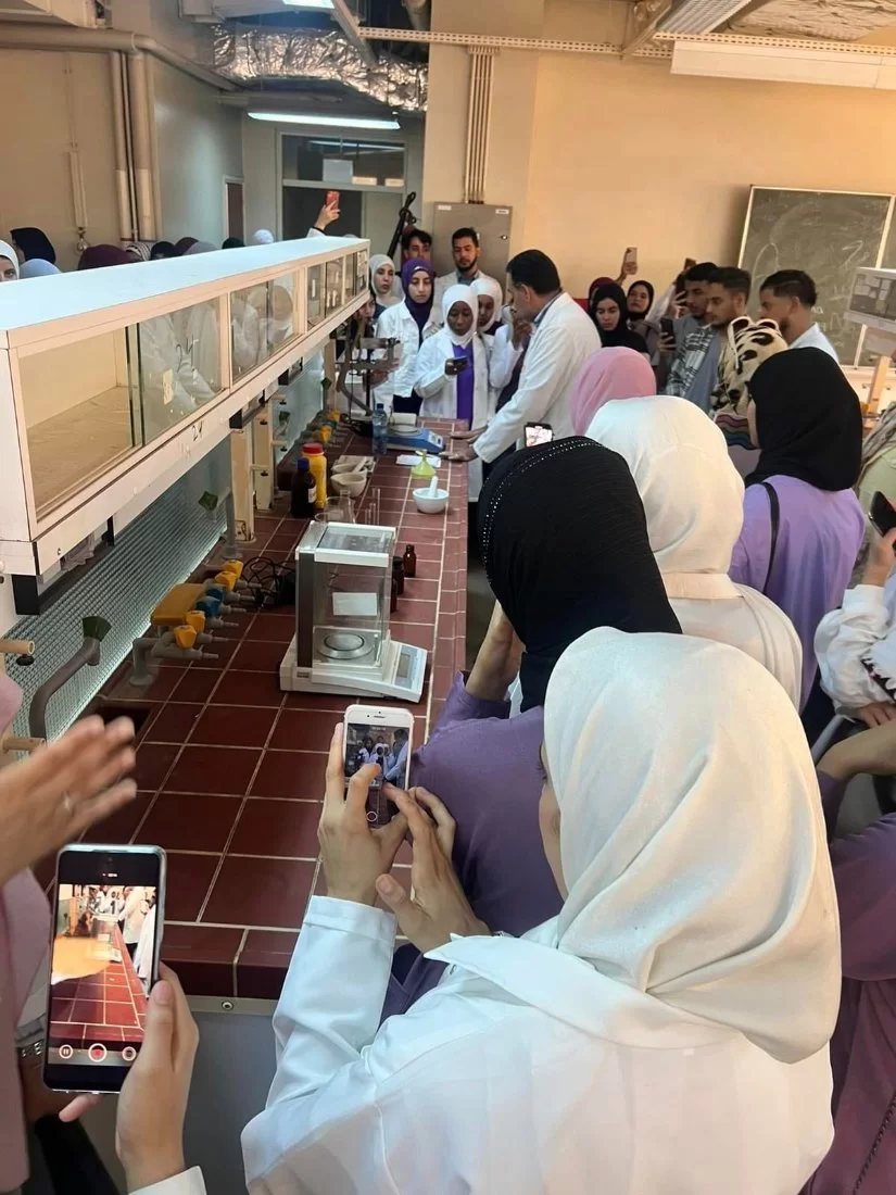 قام قسم الصيدلانيات ومكتب خدمة المجتمعبكلية الصيدلة وبإشراف أ د عبدالرحمن احمد عكاشة و د. فتحية المانيباستضافة طلبة المعهد العالي للعلوم والتقنيات الطبية (قسم الصيدلة يوم الاربعاءالماضي 2022/11/9 وذلك في إطار التعاون بين المؤسسات التعليمية للرفع بالمستوي العلمي للطلابحيث تم تعريف الطلبة بمعامل قسم الصيدلانيات وأهم الأجهزة والمعدات والتقنيات المعملية المستخدمة في هذا القسم .
