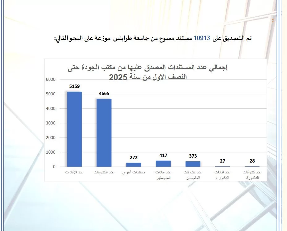 نشاط قسم تصديق المؤهلات العلمية بمكتب الجودة خلال النصف الاول من سنة 2025م