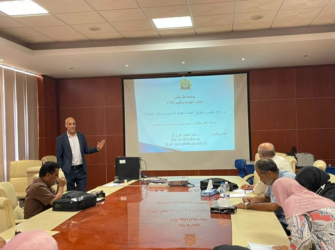 من خلال تأصيل ثقافة الجودة والاعتماد البرامجي بكليات جامعة طرابلس وبتاريخ 30-5-2022 تم إقامة ورشة عمل بكلية التربية جنزور وذلك من ضمن برامج الاعتماد البرامجي بعنوان " تهيئة كلية التربية جنزور للخصول على الاعتماد البرامجي"وكان ذلك بحضور مدير مكتب الجودة وتقييم الاداء بجامعة طرابلس الدكتور بشير شعبان الزرزاح وكذلك عميد ووكيل الكلية وكذلك منسقي الجودة بالاقسام ورؤساء بعض الاقسام والفئة المستهدفه كلا من :