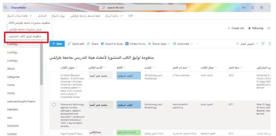 بالإضافة الى قائمة المنشورات البحثية تم تفعيل منظومة الكتب المنشورة الخاصة بمنتسبي الجامعة داخل قاعدة البيانات الموجودة بمنظومة المركز.